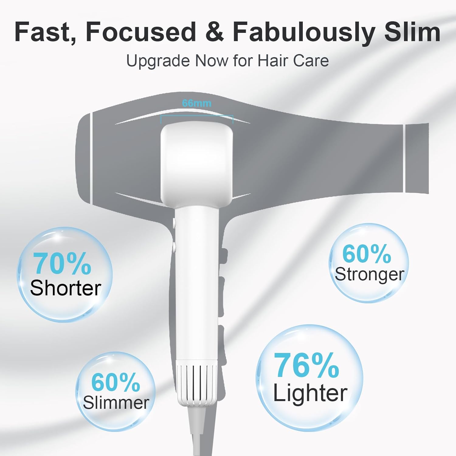 Lightweight and Portable—Our travel-friendly hair dryer weighs just 0.9 pounds, making it 25% lighter than standard high-speed dryers. It’s easy to handle, even for girls, reducing fatigue. Its compact, light, and convenient form factors make it a must-have for use at home, in the gym, or while traveling.