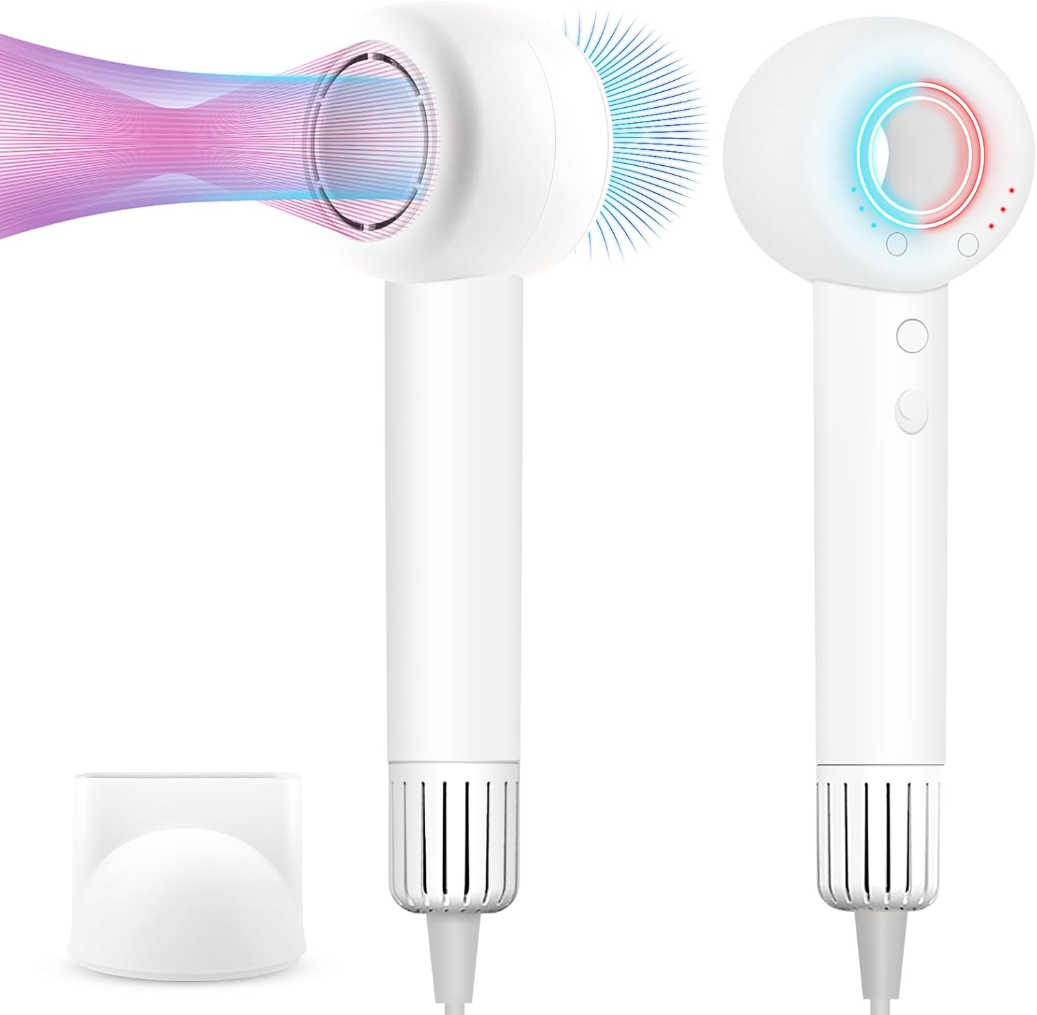 Safety and Low Noise—Outfitted with precision temperature control technology, our ionic hair dryer monitors the temperature 100 times per second and provides dual temperature protection to prevent heat damage. Built-in overcurrent and overvoltage protections ensure safe operation. It operates quieter than similar products, with noise levels under 50db, protecting your ears and enhancing comfort during use.