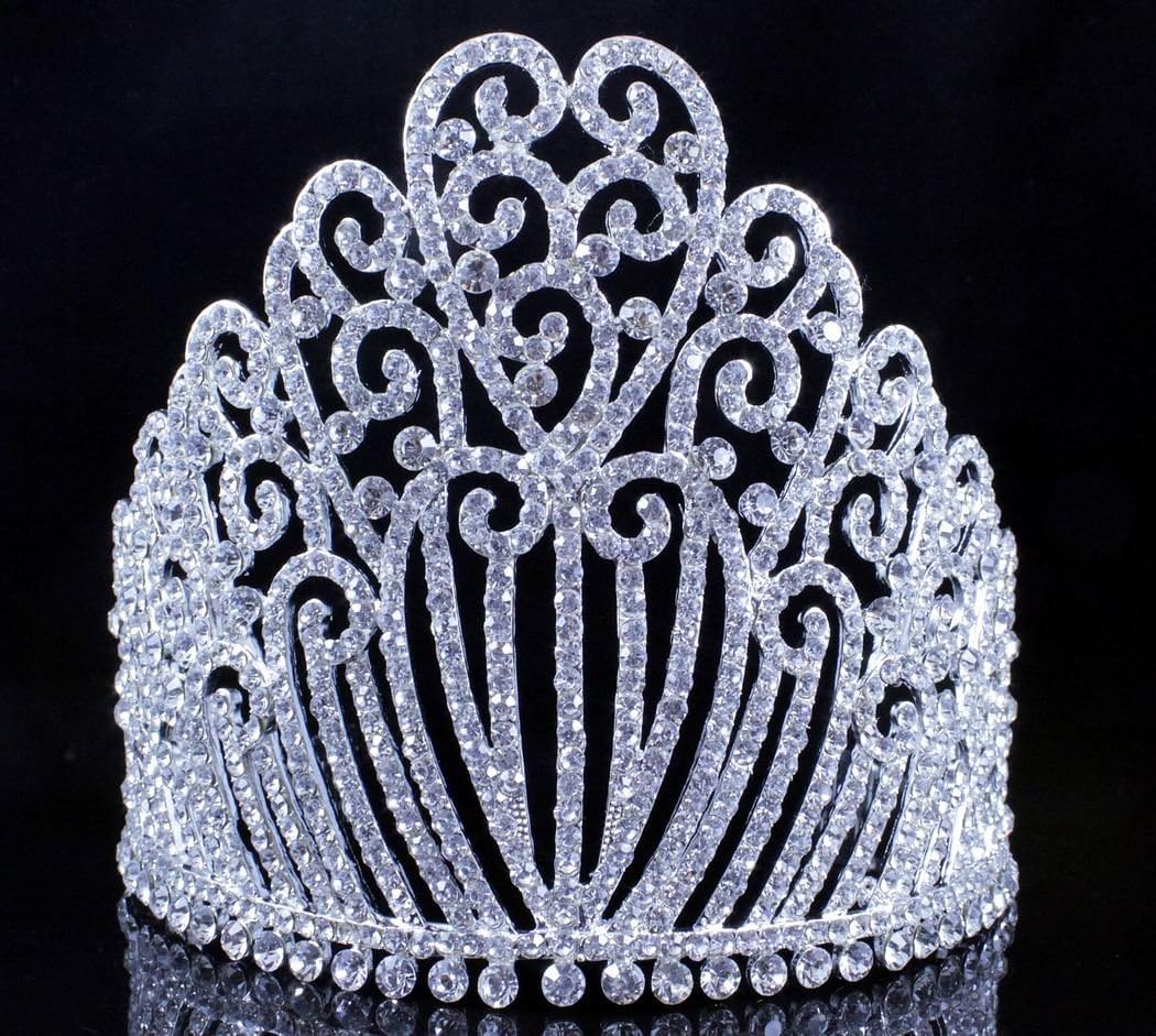 This is large size exquisite heart Austrian rhinestone tiara crown with hair combs. Glittery Clear Austrian rhinestones are heavily set on Silver-plated /Gold-plated metal. Rhinestones go all the way to the back of the tiara. All the rhinestones shine a lot! Sides hair combs for extra security. This tiara is perfect for wedding, party, prom, pageant or any special occasions! Thanks for looking!