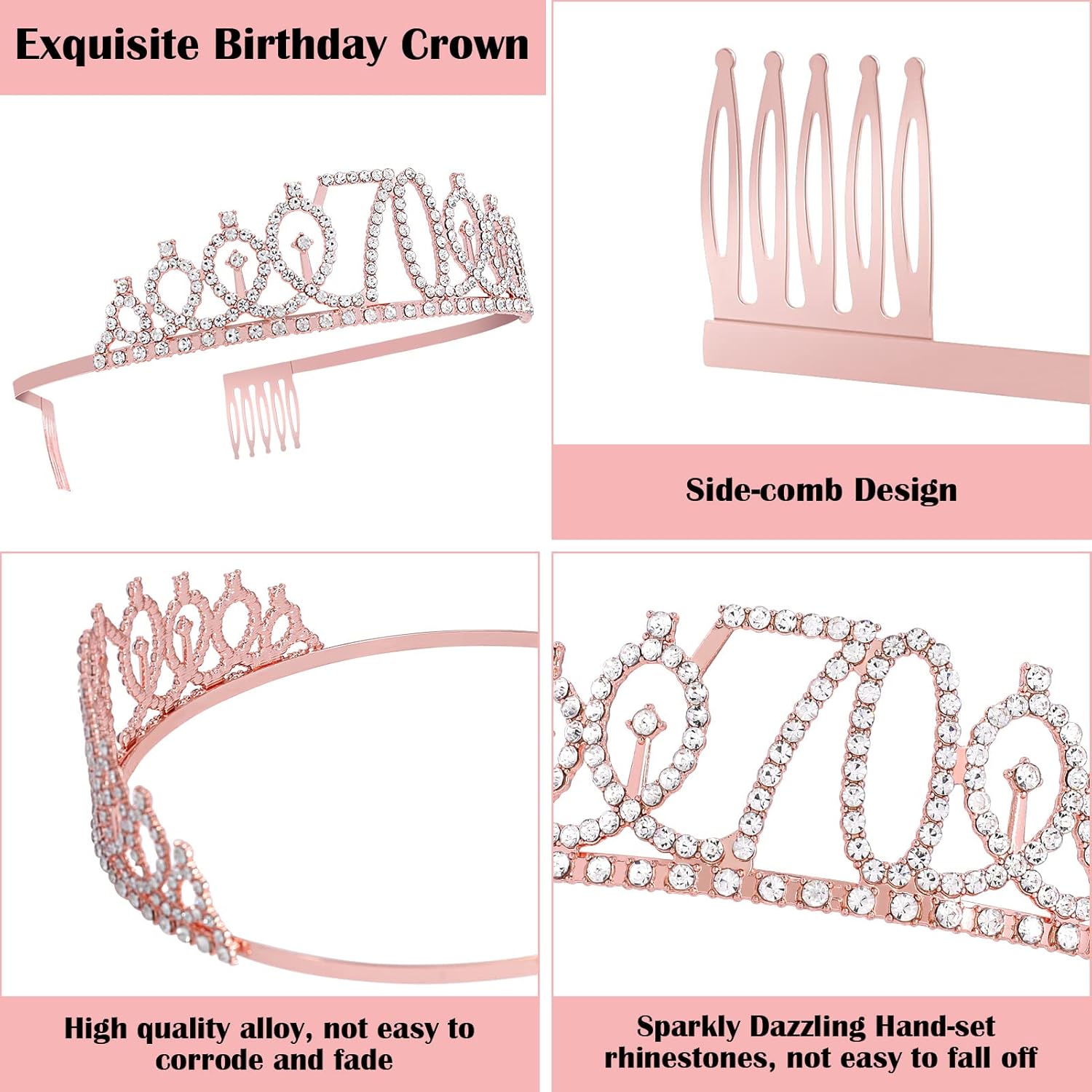 70th Birthday Crown for Women: Made of high quality alloy and rhinestone. Rose Gold 21 Tiara with combs that make sure it can grip the hair more tightly. Ensure it can be more sturdy, decorate your hairstyle, show your charm at the same time keep you elegant and comfortable all day long. Dimension: 5.12” on the front side.