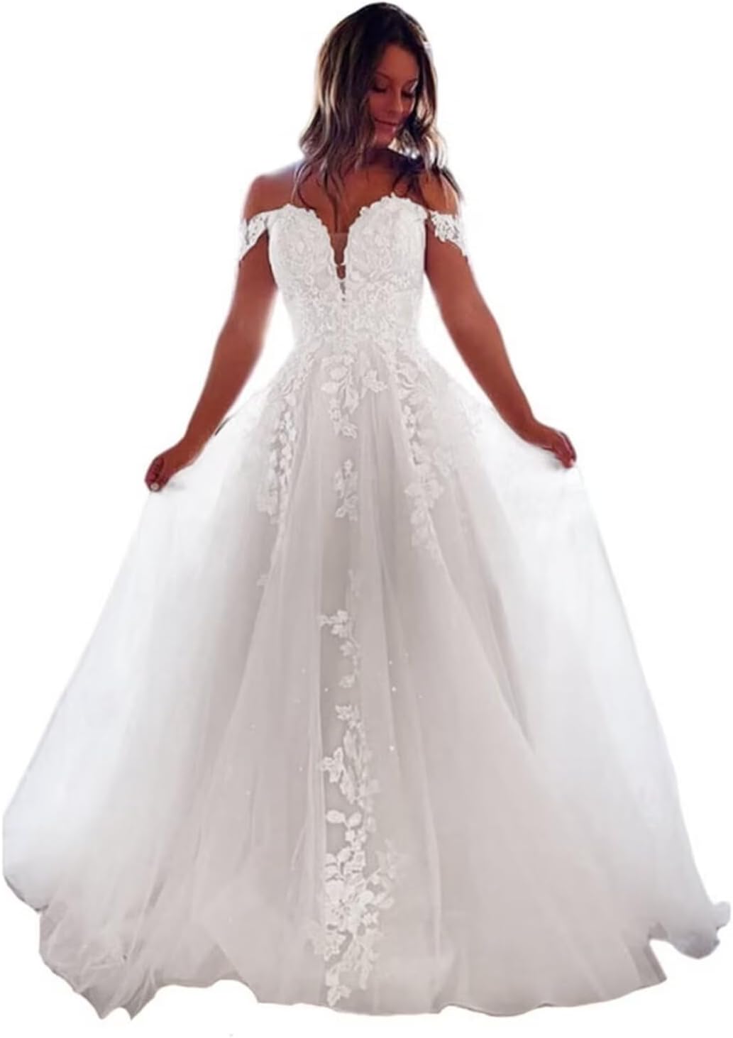 Elegant Off Shoulder Wedding Dresses for Bride Lace Bridal Gowns Appliuqes A-line Wedding Gowns with Train