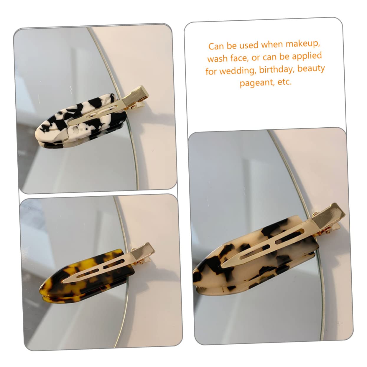 Alligator hair clips– can be when makeup, wash face, or can be applied for wedding, birthday, beauty pageant,