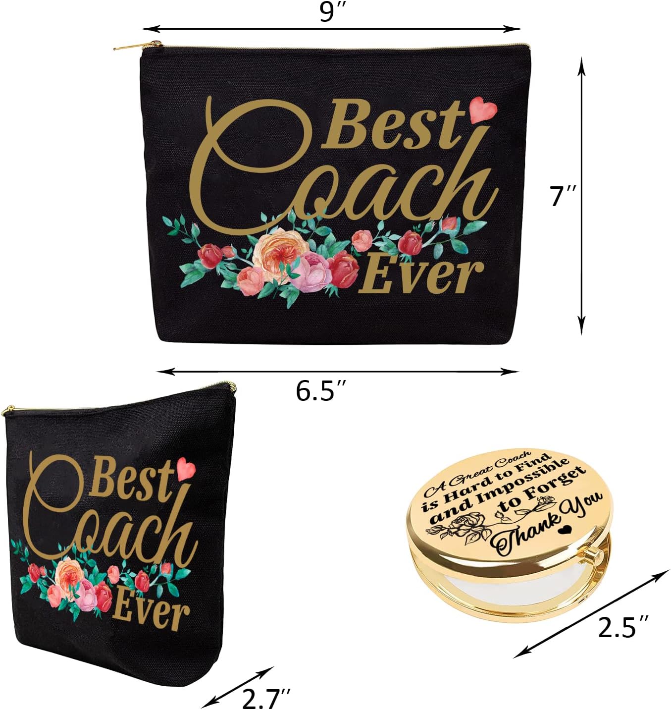Best Coach Gifts: This Special Coaches Gift set includes One Best Coach Makeup Bag printed with sayings “Best Coach Ever” and One Best Coach Mirror printed with sayings “A Great Coach is Hard to Find and Impossible to Forget Thank You”. One of the Best Coach Gifts Ideas for A Great Coach, a perfect Personalized Coach Gifts, Birthday Gift for Coach, Thank You Gifts for Coaches or Appreciation Gifts for Coach