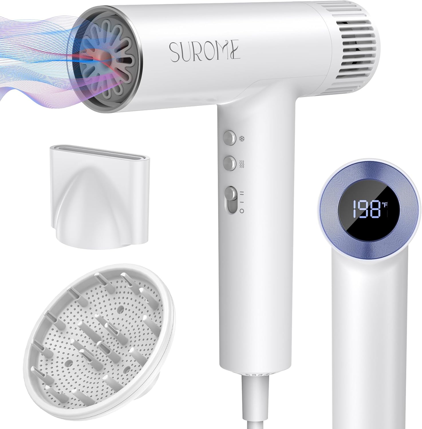 【Precise Temperature Management】 SUROME high-powered blow dryer packs 1300W of energy, delivering robust performance to save time and reduce energy consumption. Achieve sleek, refined hairstyles without compromising your hair’s health. Reducing drying time without excessive heat damage for smooth, shiny results