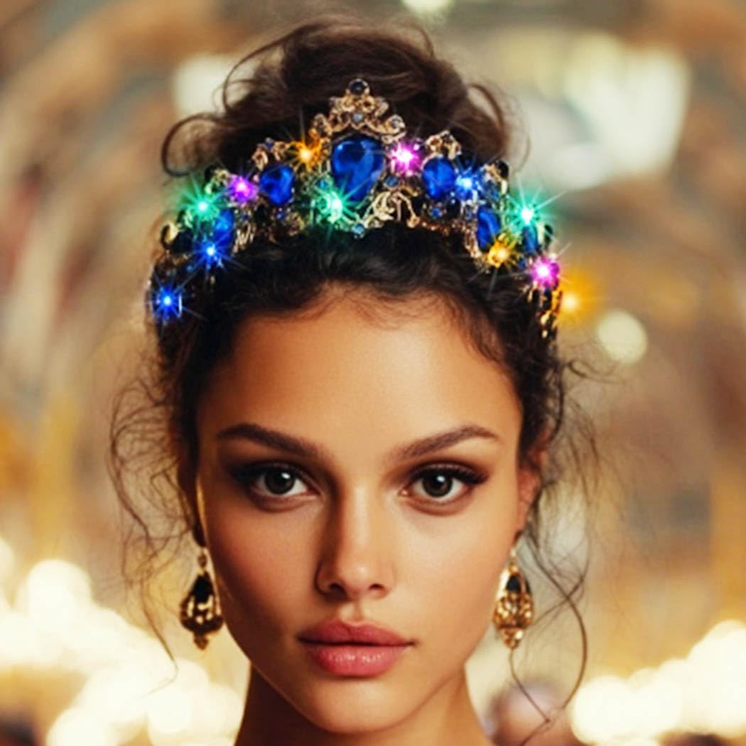 Review: This Brishow light-up gold baroque crystal crown is absolutely stunning. The crystals sparkle beautifully, and the gold design looks elegant and regal. It’s lightweight and comfortable to wear, making it perfect for homecoming, prom, quinceañera, or any special event. The light-up feature adds a fun, magical touch that really stands out. Very happy with this purchase—it’s a show-stopping accessory! This is a beautiful gift for queens and princesses of all ages!