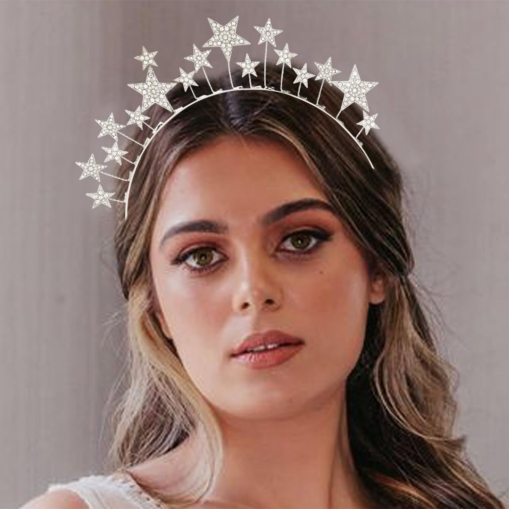 Star crown headband approx. 4.9IN/12.5CM, with elasticity, fits most women and teen girls head.