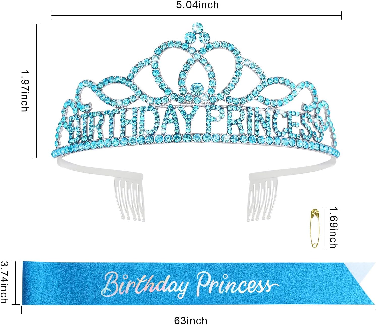 “Birthday Princess” Sash + Rhinestone Tiara Gifts Set.