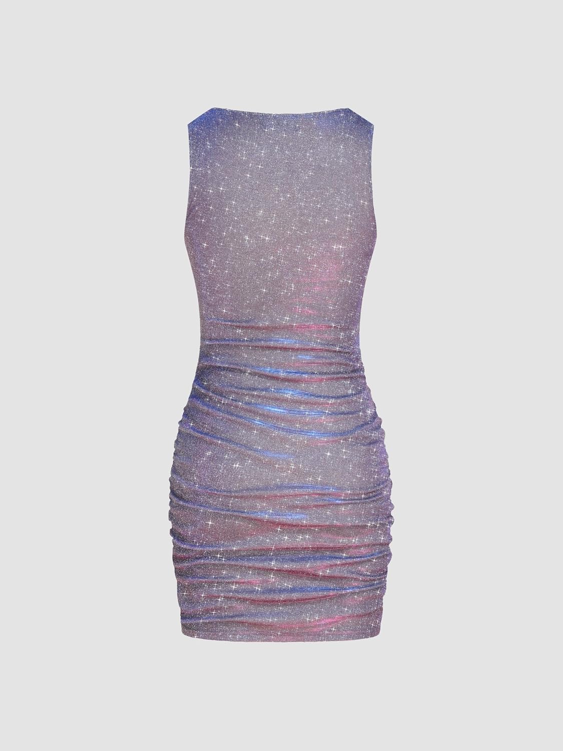 Customers find the dress flattering and comfortable. They appreciate the fit that hugs their curves, the stretchy fabric, and the shiny and sparkly fabric. However, some customers have mixed opinions about the glitter effect.