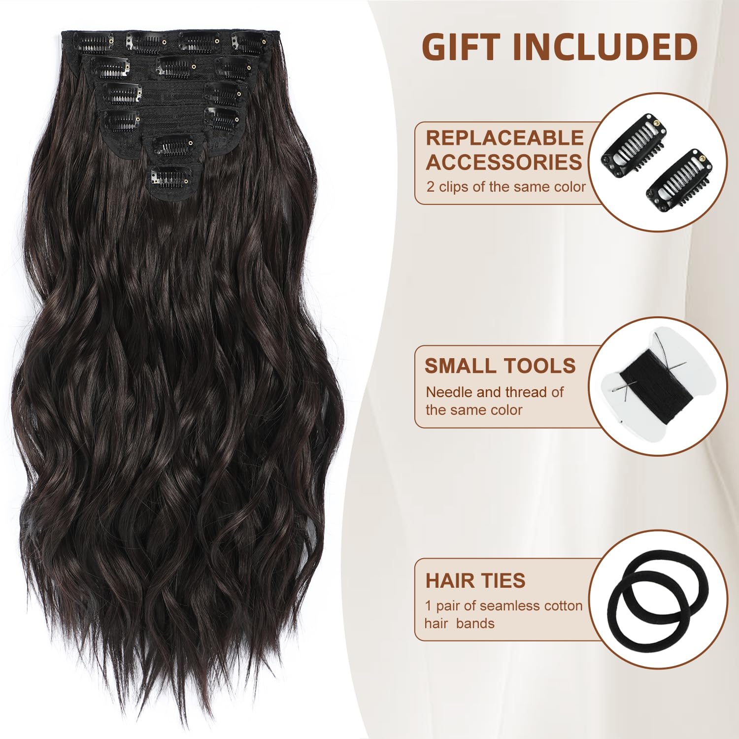【More Hair Extensions】Fliace clip-in hair extensions are available in a set of 6 pcs hairpieces, 220g for hair with clips: 1 piece of 6.7 inches wide 4 clips in weft, 1 piece of 5.5 inches wide 3 clips in weft, 2 pieces of 4.9 inches wide 2 clips in wefts, 2 pieces of 2.2 inches wide, 1 clip in wefts.