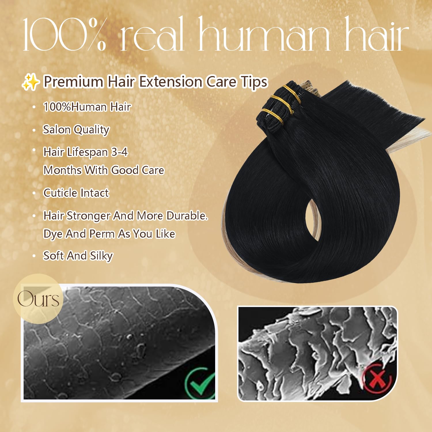 Confident Purchase & Care:You can contact us for any questions.We’re here to help! Maintain your human hair extensions clip ins’ softness and shine with mild shampoo, conditioner, and heat styling below 180°C. Enjoy long-lasting beauty with proper care.