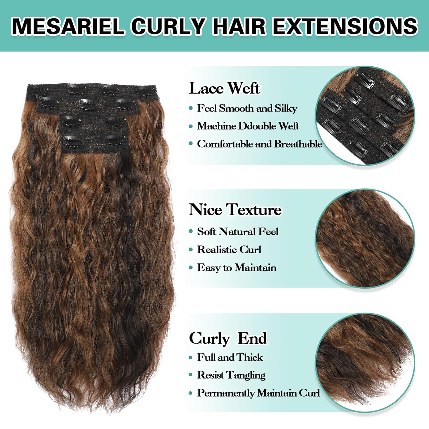 ⚡Instant Style Upgrade : No glue or tape, achieve a stunning curly hair look in 3 minutes, give you a fuller, more luxurious appearance with added length. Our 4PCS clip ins feature secure clips that stay in place comfortably throughout the day.