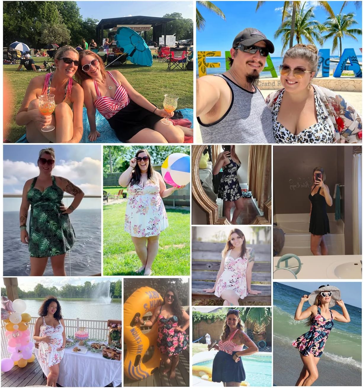 Review: I really like this swimsuit a lot. It’s comfortable and hugs my curves in the right way. I love how the leotard of the suit is squared at the bottom like shorts almost because it helps keep my tummy in and covers more. I like to buy one piece dresses because of the fact that I hate showing my upper legs in a swimsuit as well as cover my tummy bump. I also lost a ton of weight due to stress so I have an issue with sagging/hanging stomach because of how I lost the weight and didn’t tone so I was happy this swimsuit was able to keep it tucked in.At first when I tried it on I was a little nervous about what would happen if it got wet and I had to use the bathroom as one pieces are so hard to get back on if you’re wet and this fit my body so perfectly so much that I was worried it would be too hard, but I was amazed it was not a problem. It feels like it’s not stretchy enough but it is. The sizing chart was a little confusing and the reviews made it even more confusing because different people were saying different things but I was able to figure out the right size. Normally I’m a 22/24 sometimes a 20 depending on the item/store/material but typically 22/24. I can fit into a 2x at regular stores although I tend to go with the 3x for extra room in my tummy area. I ordered the 4x and it fit perfectly.I do have 2 issues with the suit that one of them most people are saying and it is that it is not really great for swimming in an ocean with huge waves if you are big chested. I am an F cup and let’s just say I had to adjust the girls every time a huge wave came and was practically spilling out at points. But it’s a constant struggle anyway so I just dealt with it. The other thing is and I didn’t realize this until I got to the beach and this is on me and not the suit itself but I should have rethought the suit because of the straps. They crisscross in the back and although they were supportive I didn’t like the giant unevenly thick tan lines I got and I burned pretty bad because the person putting on sunscreen on my back didn’t get that area well. Also it made wearing a bra hard for a few days because of the burn. Normally regular straps that go straight back would have created a neutral spot for my bra straps to rest but because of the cross cross design the part of my back where my bra straps went was burned and I couldn’t wear a bra for a few days. Again, not a flaw on the suit but just worth mentioning to think about.Overall I really like this suit. It’s flattering and cute and is perfect for covering my problem areas but I think I may look into a different suit for the beach next time and save this one for the pool. Or find someone else to put on sunscreen for me lol I’ll post more pics in it another time. I didn’t take full body pics yet