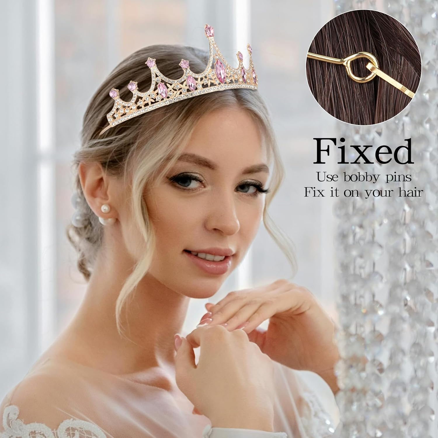 PERFRCT SIZE:The crown is 5.5 inches in diameter and 1 inches high. It has a perfect size, neither too big nor too small, and it can fit perfectly with the female head curve. Whether at a grand dinner party or an ordinary gathering, it can be easily worn. It won’t look too obtrusive, and it can cleverly become the focus of everyone’s attention
