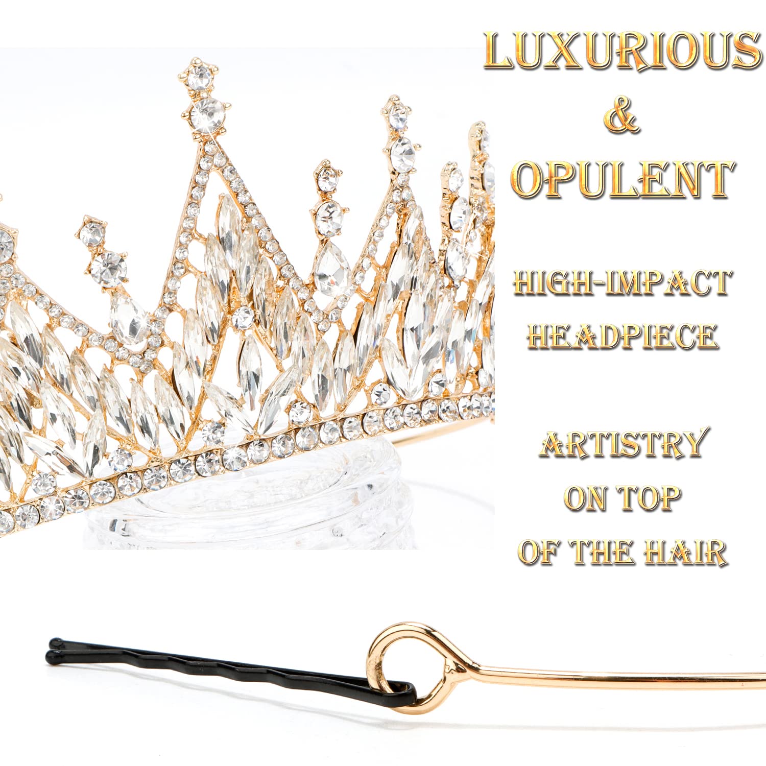 💎Exquisite materials: Fine golden alloy and sparkling crystal gems make for a luxurious headpiece of statement jewelry. Strong, durable gold crown meets dazzling crystal shines from every angle. An expression of artistry, a unique design of art crowns your hair.