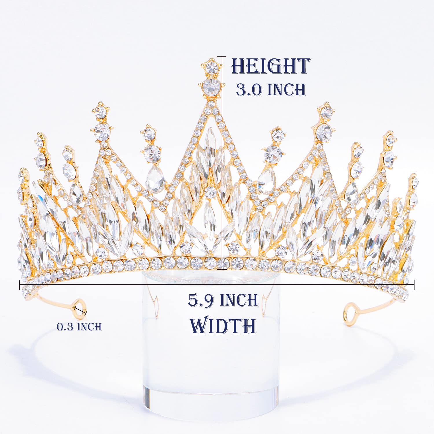 ✨Outstanding dimension: 5.9 IN in width and fully covered with rhinestone makes the crown so stunning look from front and side. Sparkling tiara with a remarkable height of 3 IN, there’s nothing catching eyes more than your crown.