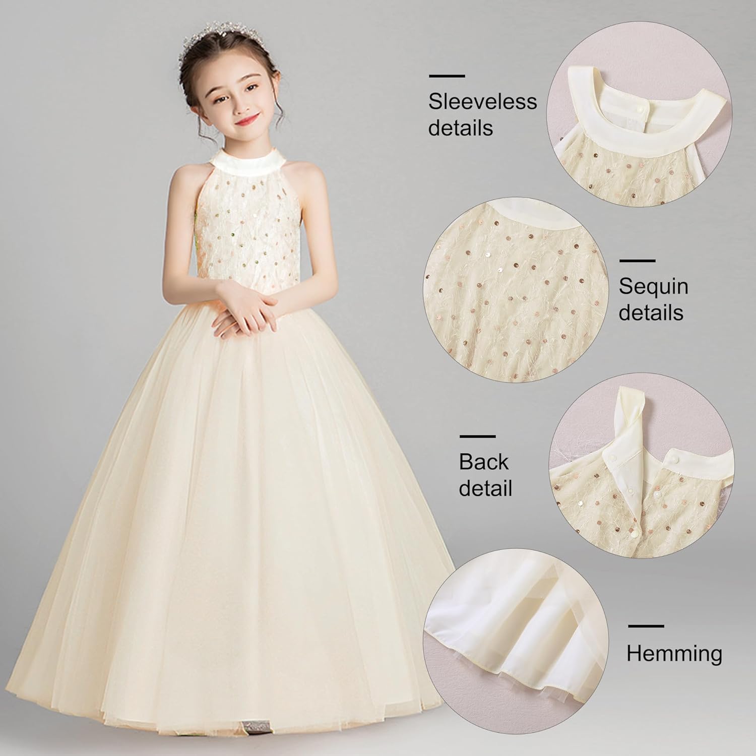 Our little girl’s wedding party sequin sleeveless mesh dress dress is an outfit that will attract countless backward glances from you on any occasion!