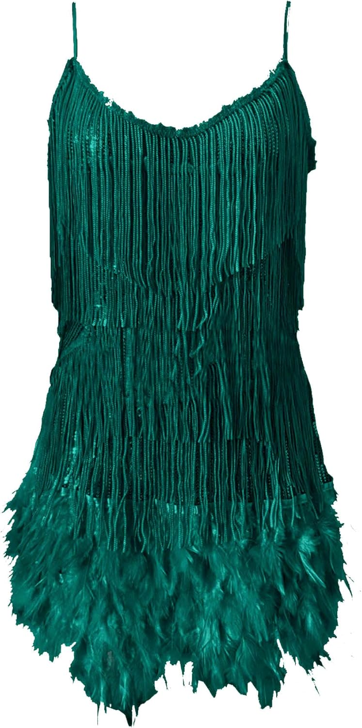 ECDAHICC Women’s Flapper Dress Sequins Fringe Strappy Dress Gillter 1920s Gatsby Feather Club Bodycon Mini Dresses