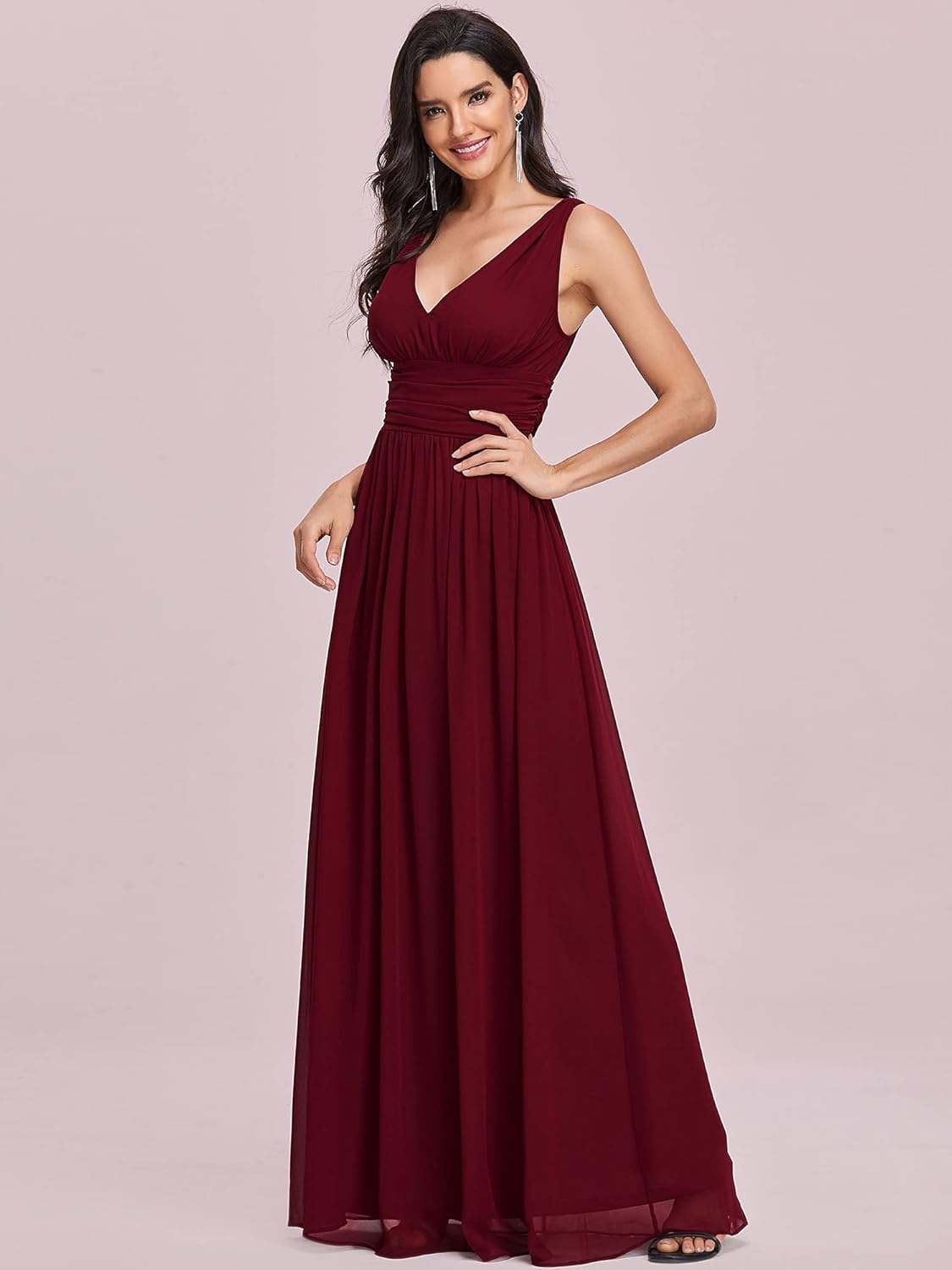 Womens V-Neck Sleeveless A Line Chiffon Floor Length Formal Dresses