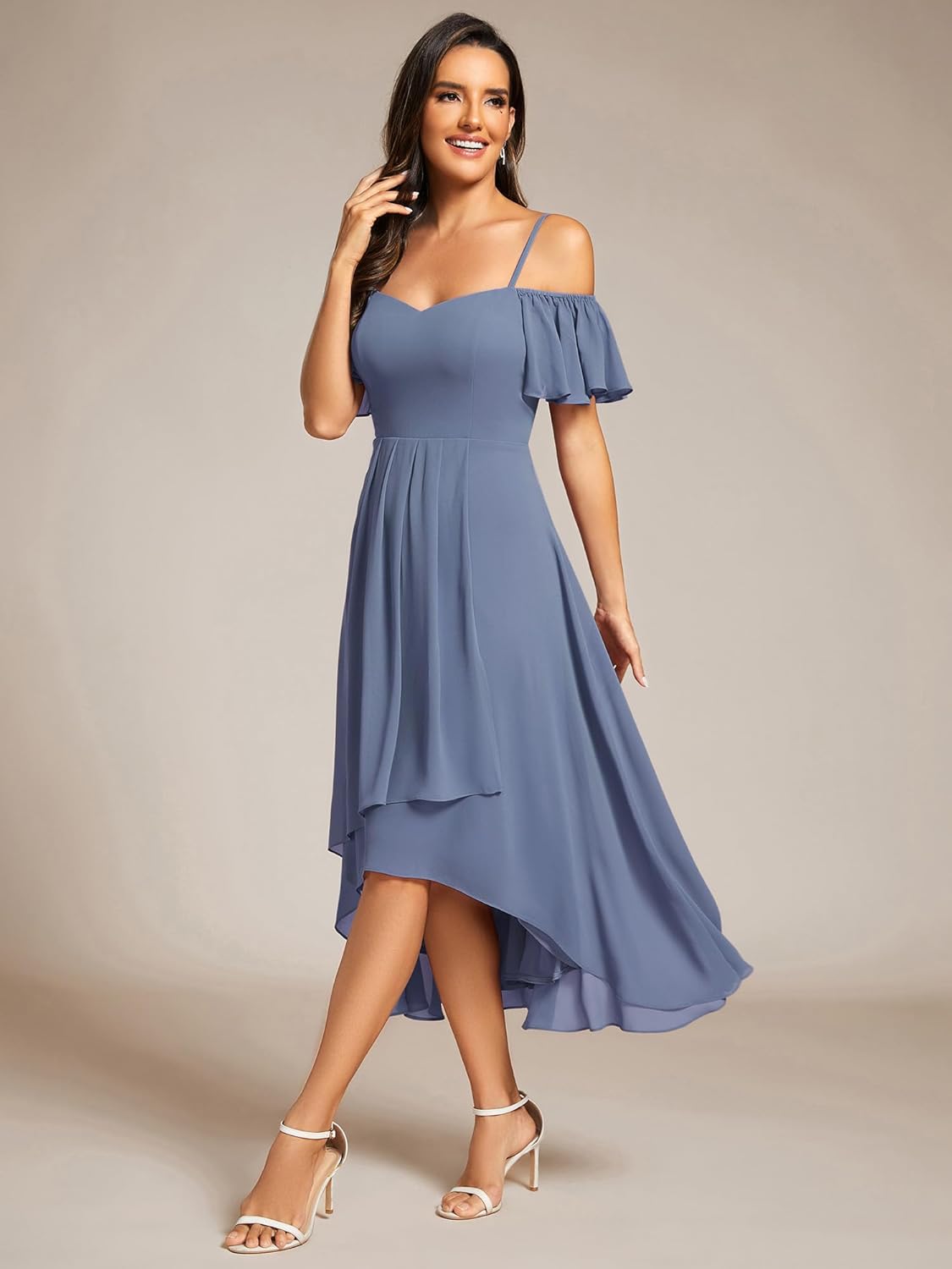 Ever-Pretty Women’s Chiffon Off Shoulder Midi High Low Cocktail Dresses