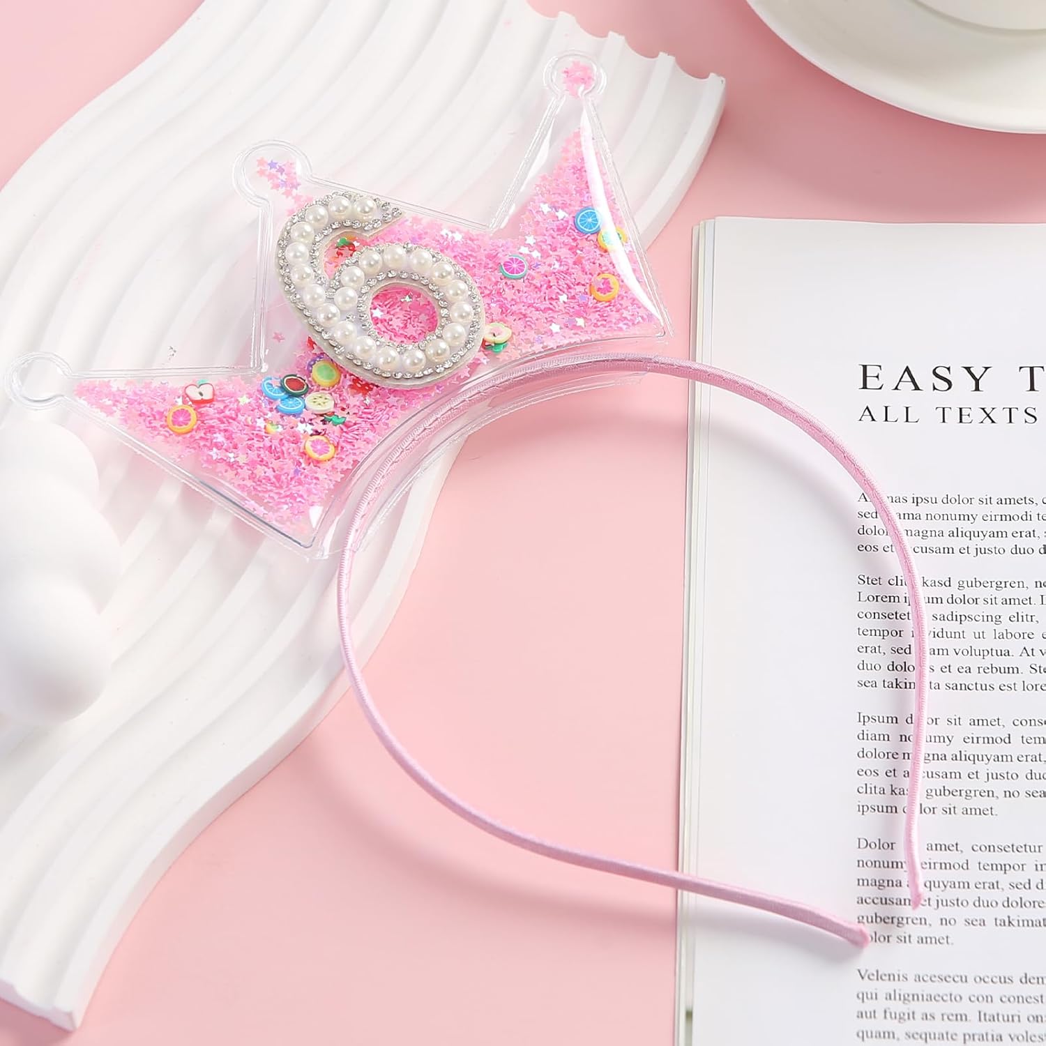 Design: Decorated with sparkle pink star sequins, small fruit accessories, faux pearls and rhinestones, sweet donut and princess style.