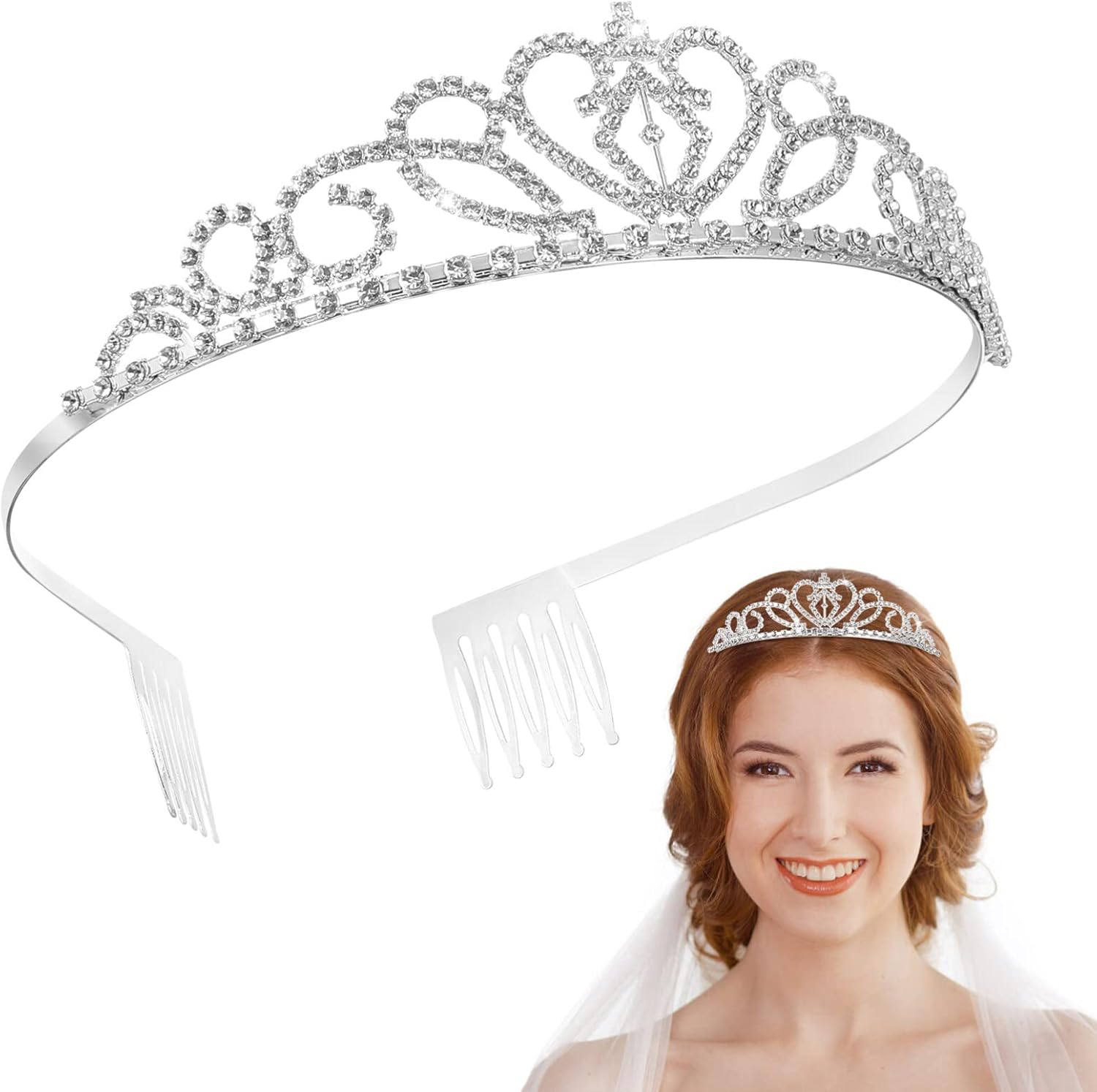Made of quality alloy and rhinestone, the silver crystal tiaras refracte a fine lustre under natural light, alloy and rhinestone material gives it diamond look and hard texture.