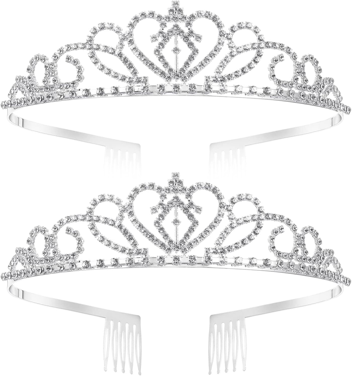 2 Pack Tiara Crown Elegant Girls Princess Crown with Combs