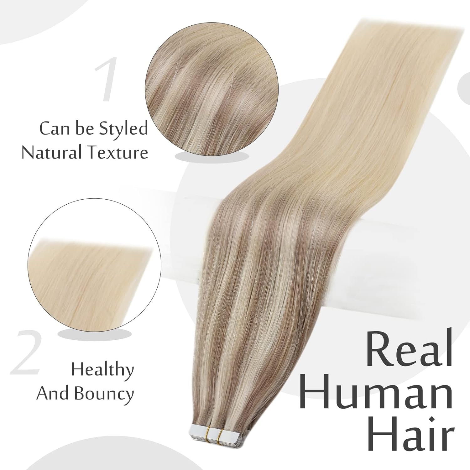 [Double Sided And Invisible Tape And Replaceable] Some Methods of Human Hair Extensions Can Lead to Poor Satisfaction Due to Scalp Discomforts Associated with Their Application.But Tape in Hair Extensions Has No Such Problems,The Application is Pain-free Since They Are Incredibly Lightweight And They Adhere Well to Your Real Hair Without Putting Any Pressure on Your Scalp.Easy to Install And Remove,The Tape is Thin And Light.