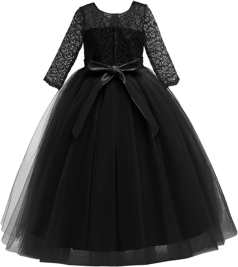 Girls Lace Flower Ruffle Sleeve A-Line Swing Wedding Party Maxi Dress