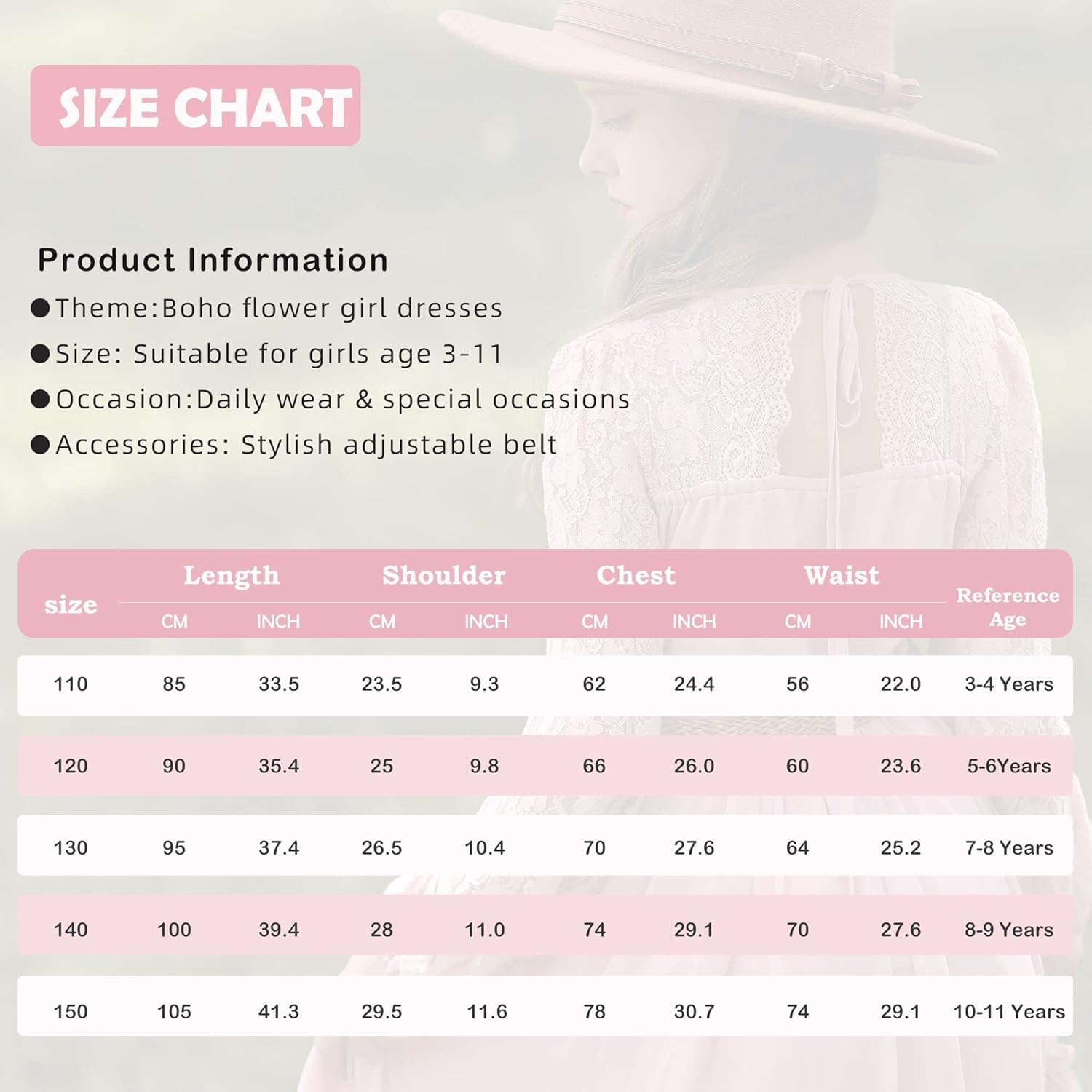 Please refer to our size chart to choose the right size for your girls.