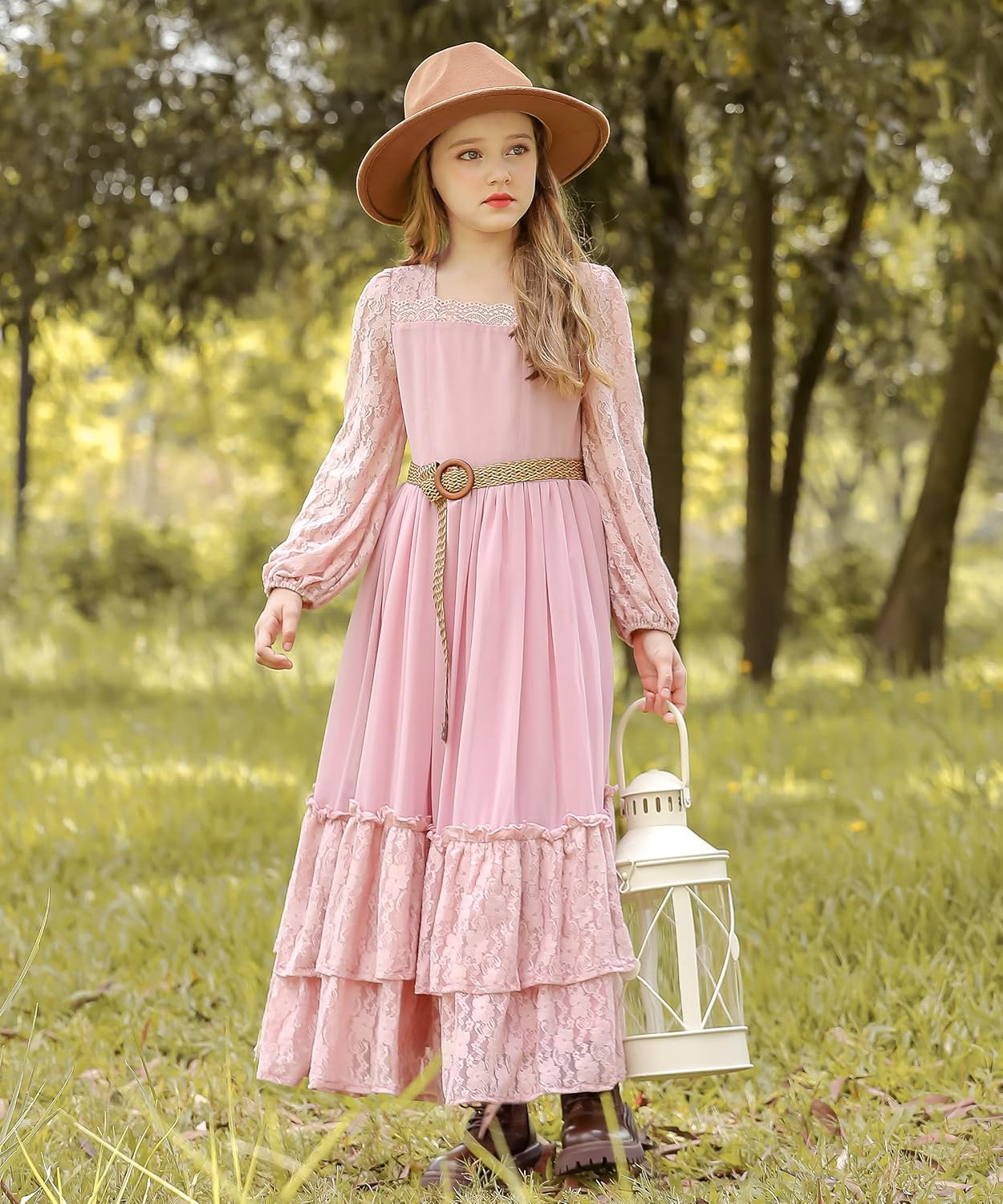 CCJRLM Girls Lace Backless Full-Length Dresses,Boho Flower Girl Dresses Halloween Holiday Party lace Dress for Girls.