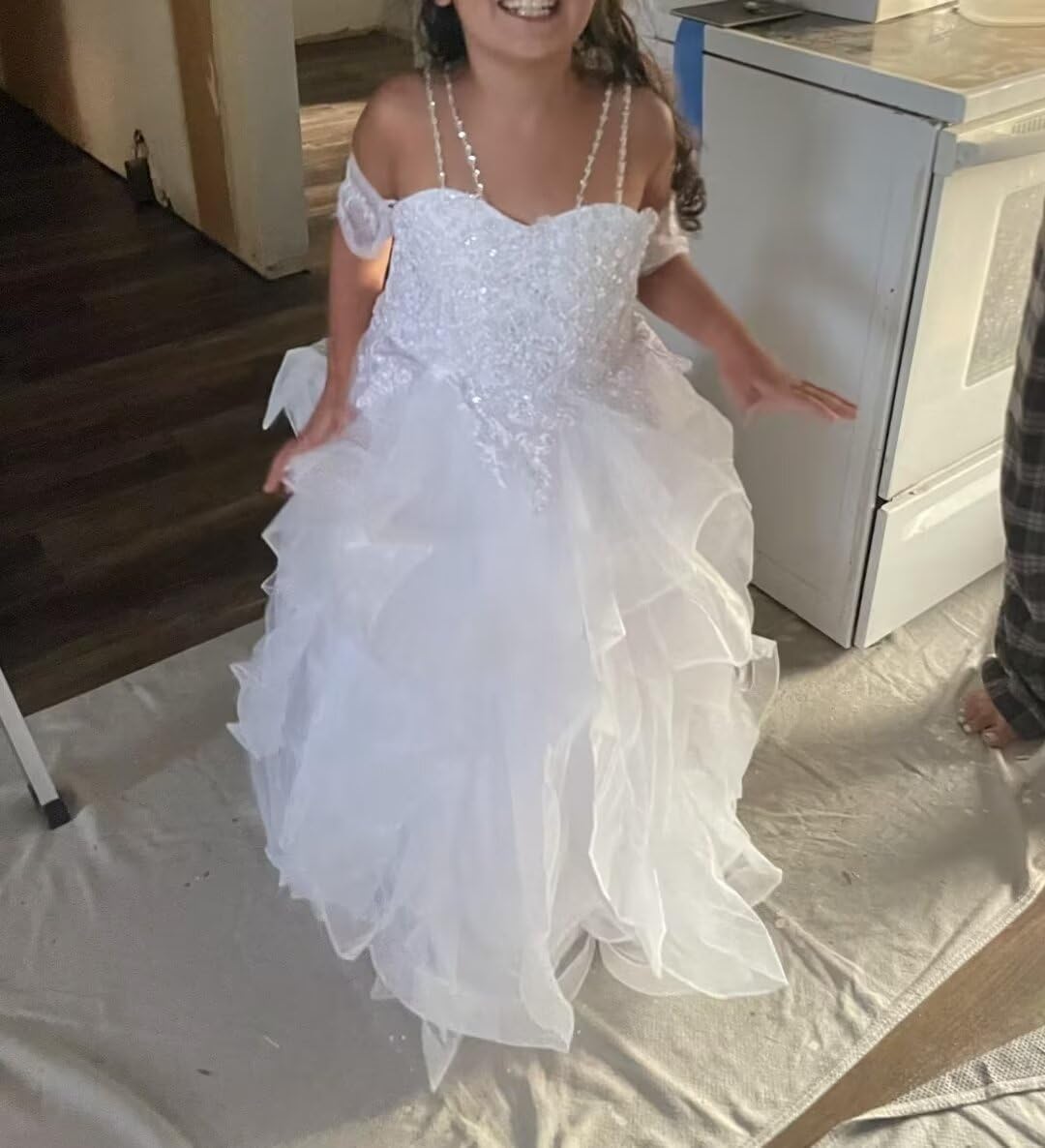 Flower Girl Dresses for Wedding Lace Applique Princess Ruffles Pageant Dress