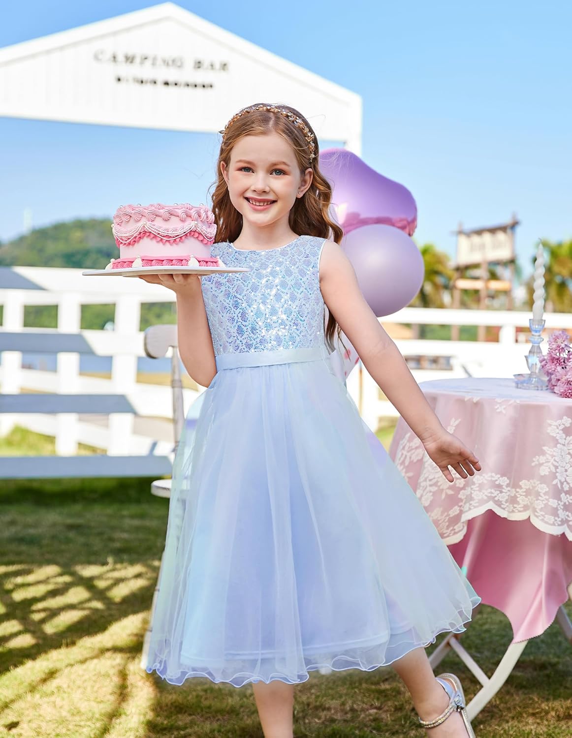 Crafted for comfort and style, this dress is perfect for holiday gatherings, flower girl duties, or any event where she needs to stand out. Let your child enjoy unforgettable memories and picture-perfect moments in this elegant and fashionable party dress that combines timeless charm with modern flair.