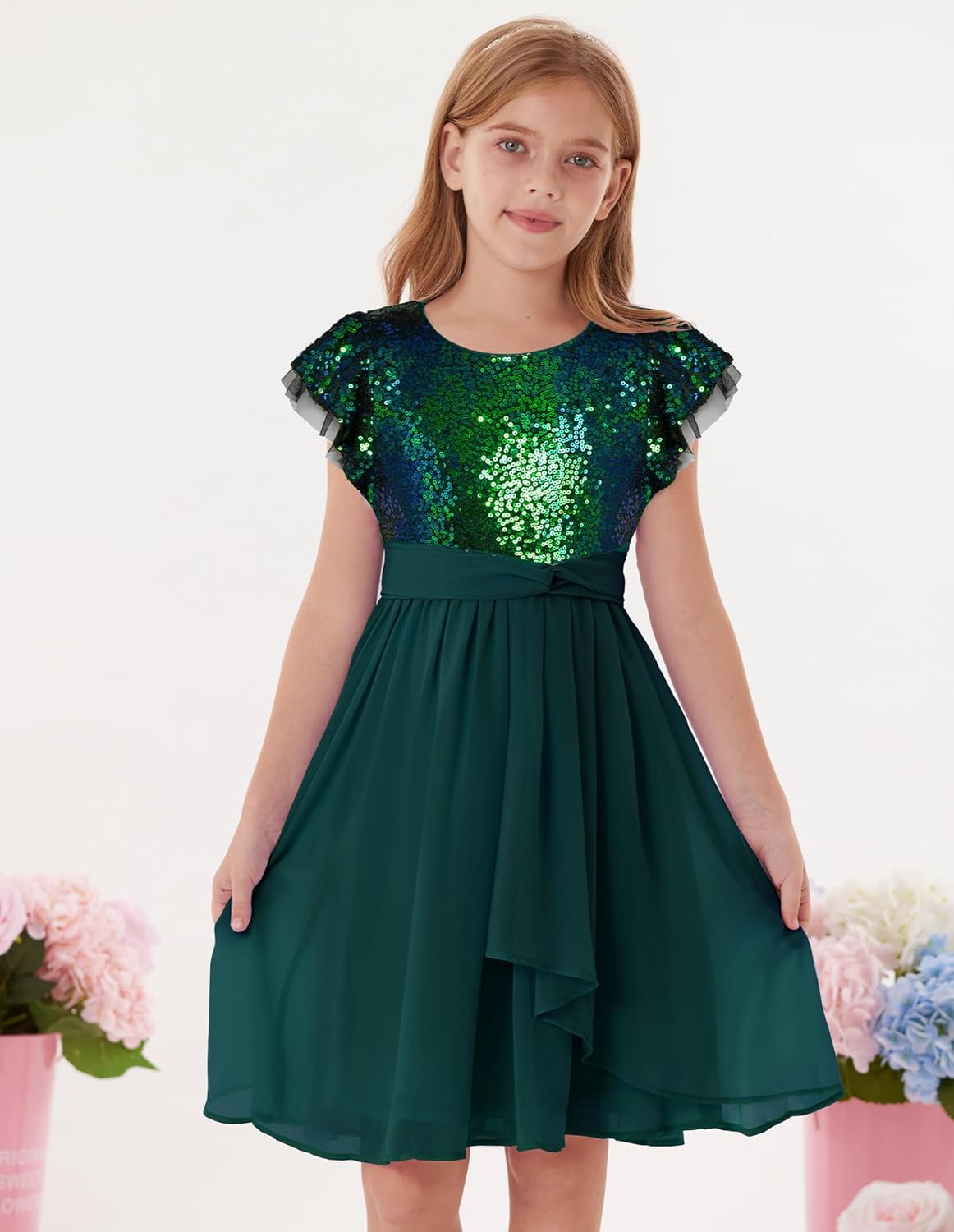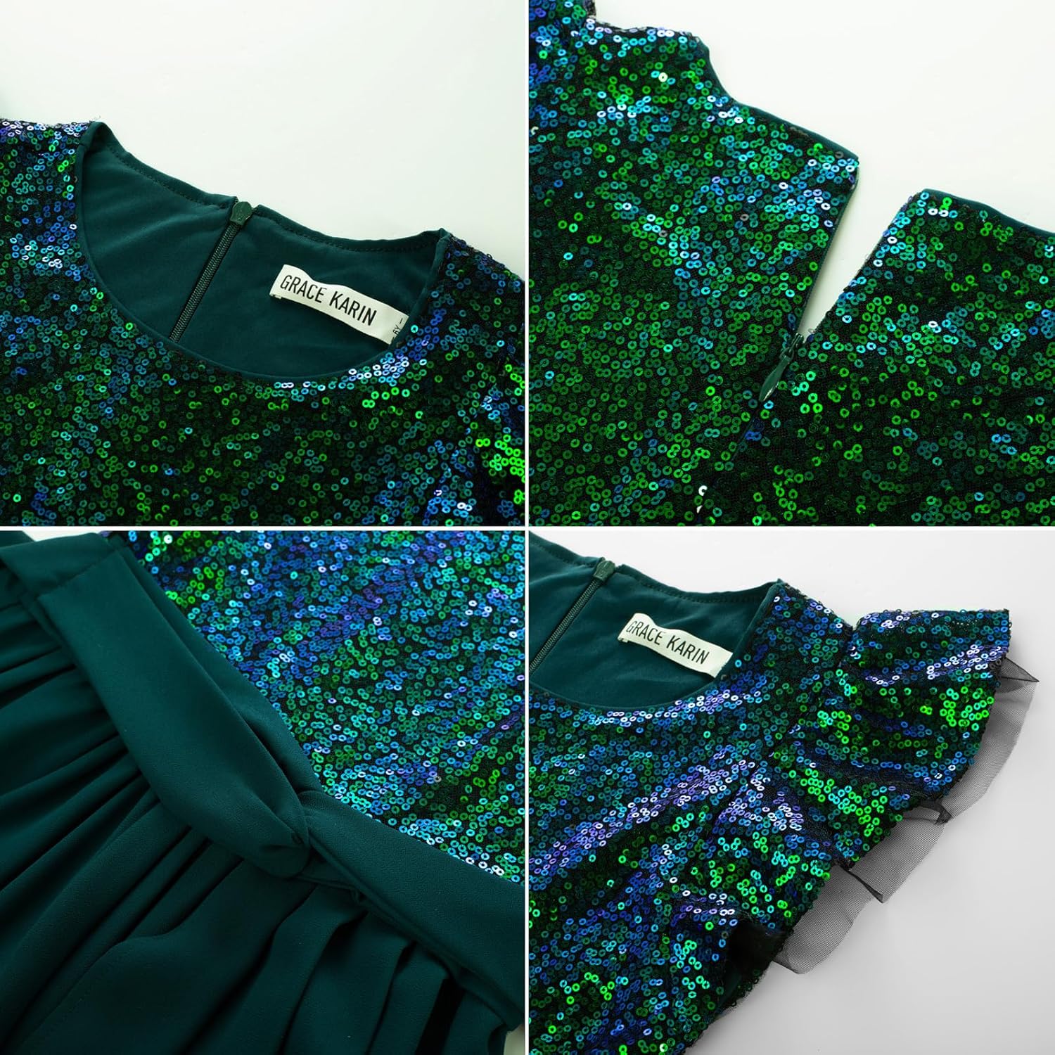 GRACE KARIN Girls Sequin Chiffon Fashion Dress Size 5-12 Years
