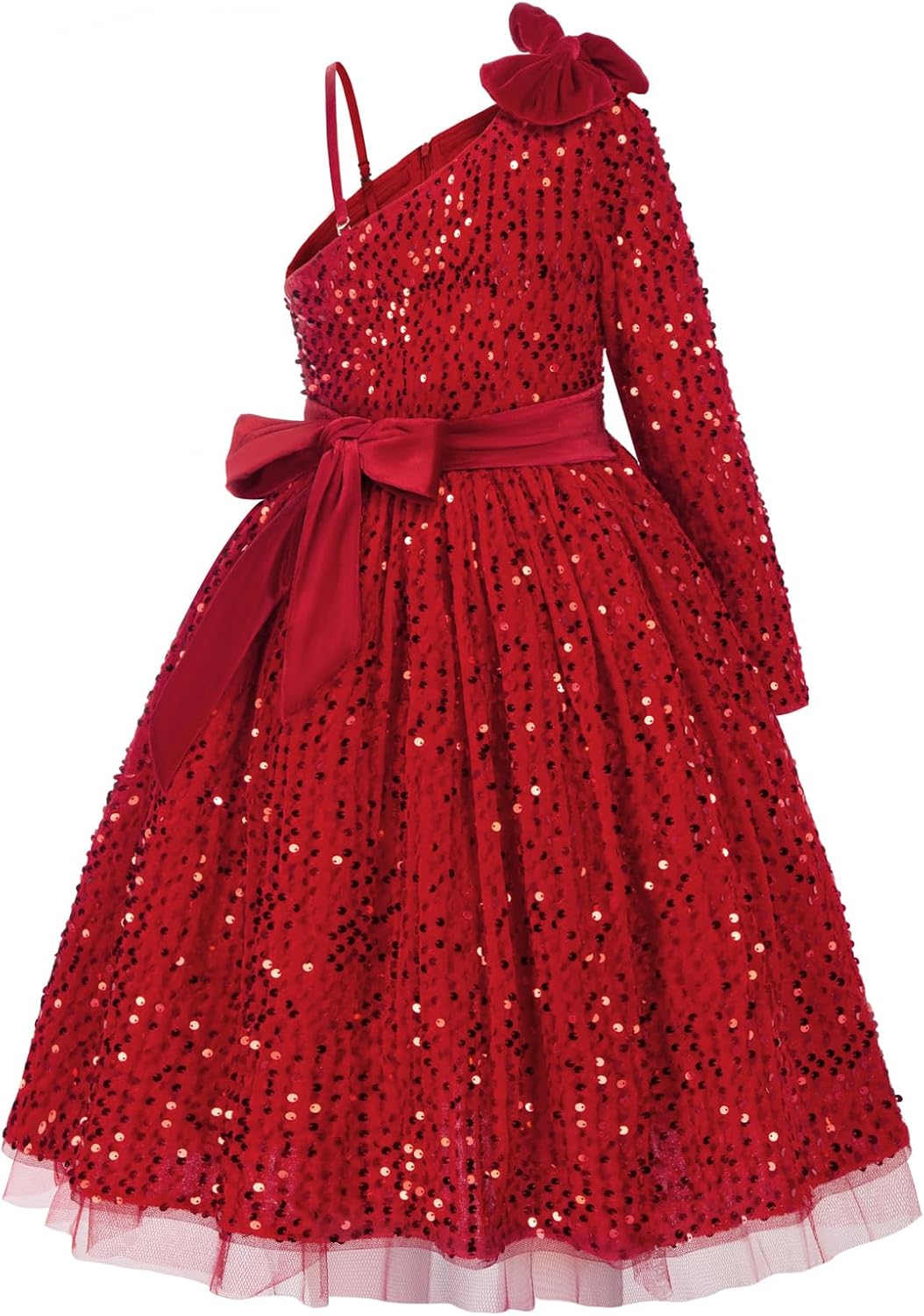 Girls one shoulder long sleeve sequin dress
