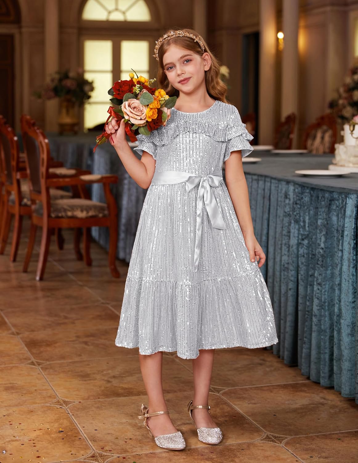 2024 Luxury Midi Short Sleeve Sequin Dress For Girls