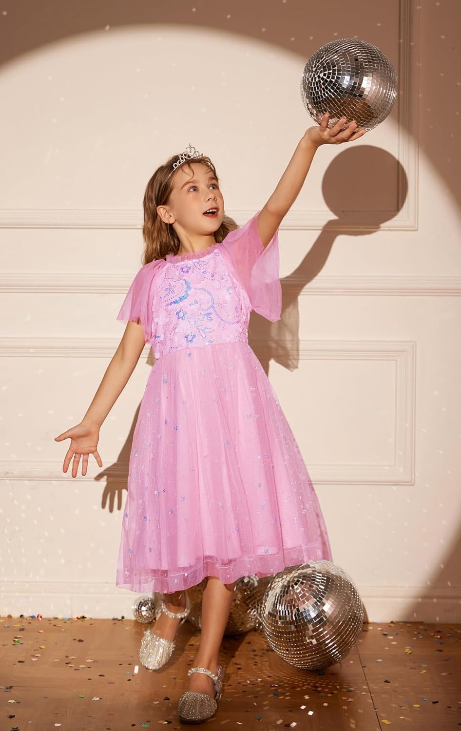 GRACE KARIN Girls Ruffle Glitter Sequin Shired Tulle Prom Party Dress 5-12 Years