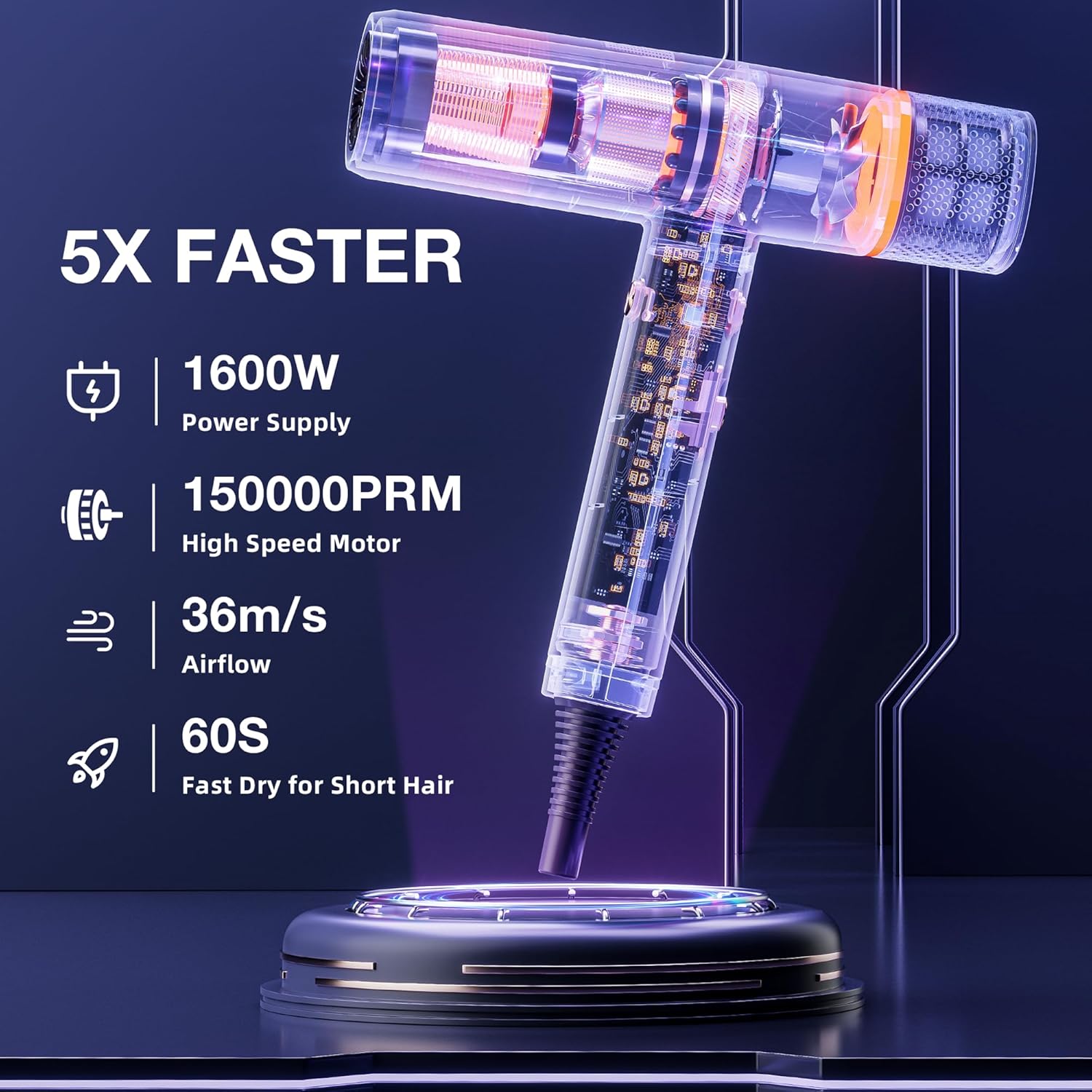 Fast Drying: Tresses Touch hair dryer has a high-speed brushless motor of 150,000RPM. The hairdryer is upgraded with high power to provide powerful airflow at 36 m/s wind speed to dry hair quickly, 5x faster than traditional hair dryers. It takes only 2-5 minutes to dry hair. Whether you’re rushing out in the morning or winding down after a long day, this dryer makes your hair care routine efficient and enjoyable