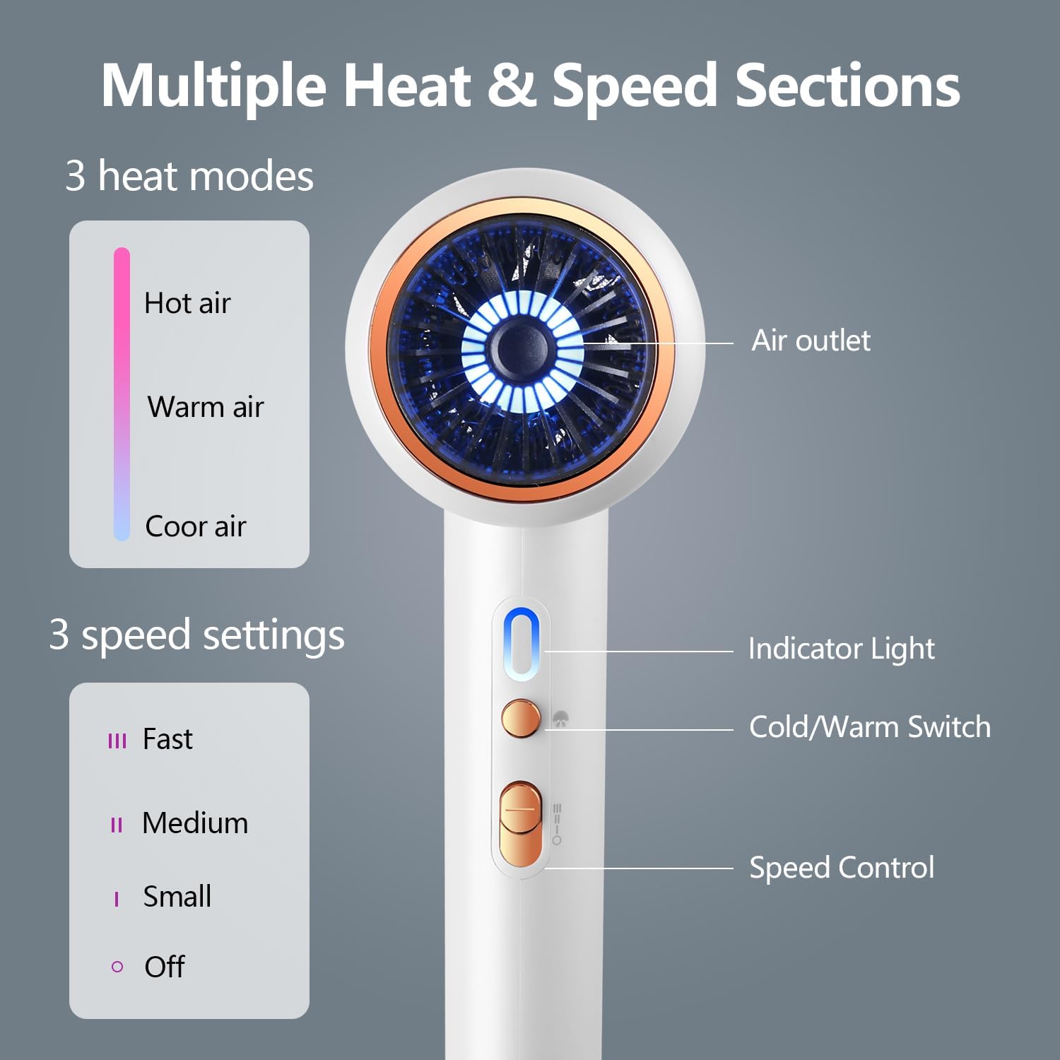 Ionic Technology: Ionic Blow dryer negative ion effect after activation,neutralizing positive charges in hair to reduce frizz and static for smoother, shinier hair. travel blow dryer for women men ensures salon-like enhances styling results.