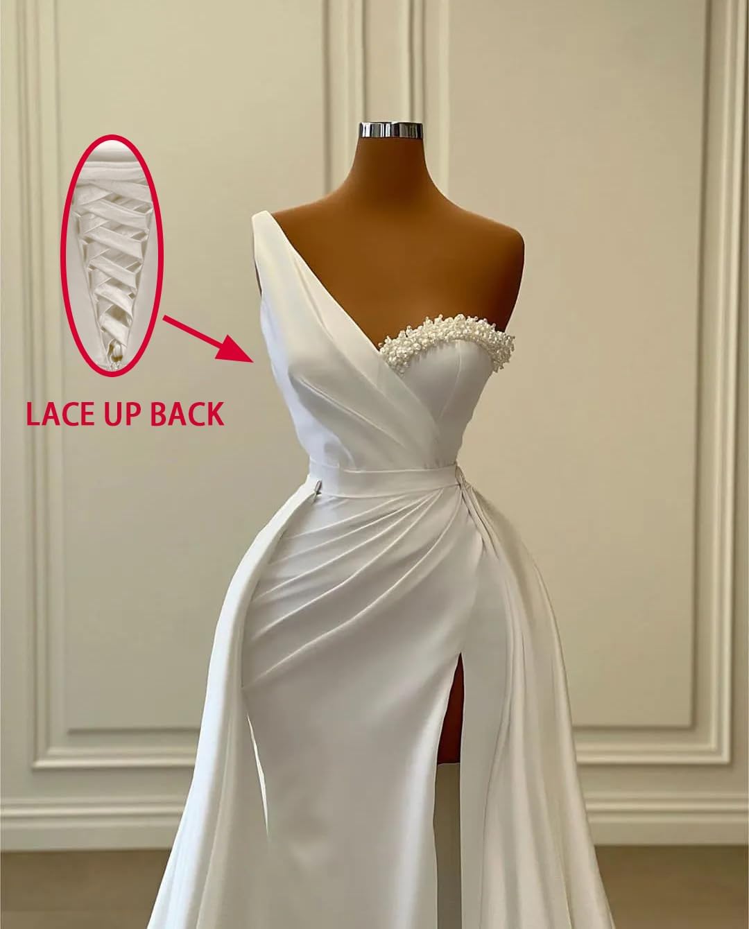 Unique Style: Prom Dresses Long Ball Gown,One Shoulder Formal Dress,Wedding Party Dresses with Detachable Train.Beaded,sweetheart,high slit,ruched,lace up back,easy to adjust.This prom dress makes you more elegant, noble, charming and confident at any special moment.