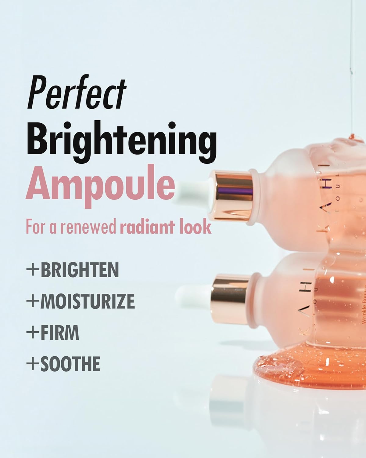 Review: Curiously, this KAHI Wrinkle Bounce Blemish Ampoule is not an ampoule since and ampoule is defined as a small glass tube, like a vial, which contains a sample or small amount of a liquidâoften vacuum sealed. The tops of ampoules, self-contained tubes, are often broken off to access the contents. In the KAHI container is 50ml (1.69 oz.) of product–in a glass bottle with a screw-on lid with an eye-dropper. A little bit of this product goes a long way; half an eye dropper of serum will cover my entire face.The Amazon promotional ad suggests that this is an oil. I find no oil in it. Water is the first listed ingredient. Listed second in the formula is glycerin. There are also a number of glycols in the ingredients. Glycerin is what I feel when I use this serum, what leaves a bit of stickiness on the face while it dries.The list of ingredients is long. Many items are botanical extracts, some are ferments. Some are related to fruits, vitamins. There are a few different types of hyaluronic acid, niacinamide, and tranexamic acid. There are chemical names of ingredients about which I know nothing.Normally I prefer products with few ingredients to know what each is doing to my skin, but I like this serum. I have used it for a week now under moisturizer in place of three serums that I have used every night for some time. I must admit that the fragrance was the hook and, too, I am a sucker for an attractive presentation. This KAHI serum has an almost-rose smell, very light and very appealing. The serum is a light pink in a frosted bottle with gold lettering.My one complaint is that this serum is not especially moisturizing. In fact, when I have used this without a moisturizer, it seems to temporarily dry my skin.I do not know, after such a short period of time, if this is any better for my skin than the trio of serums I have been usingâniacinamide, hyaluronic acid, and tranexamic acid. All in all, it costs about the same as the trio. It is easier to use one product than to have to apply three, waiting for each to dry between applications. And, of course, it has a beautiful smell that stays with me for an hour or so after use.