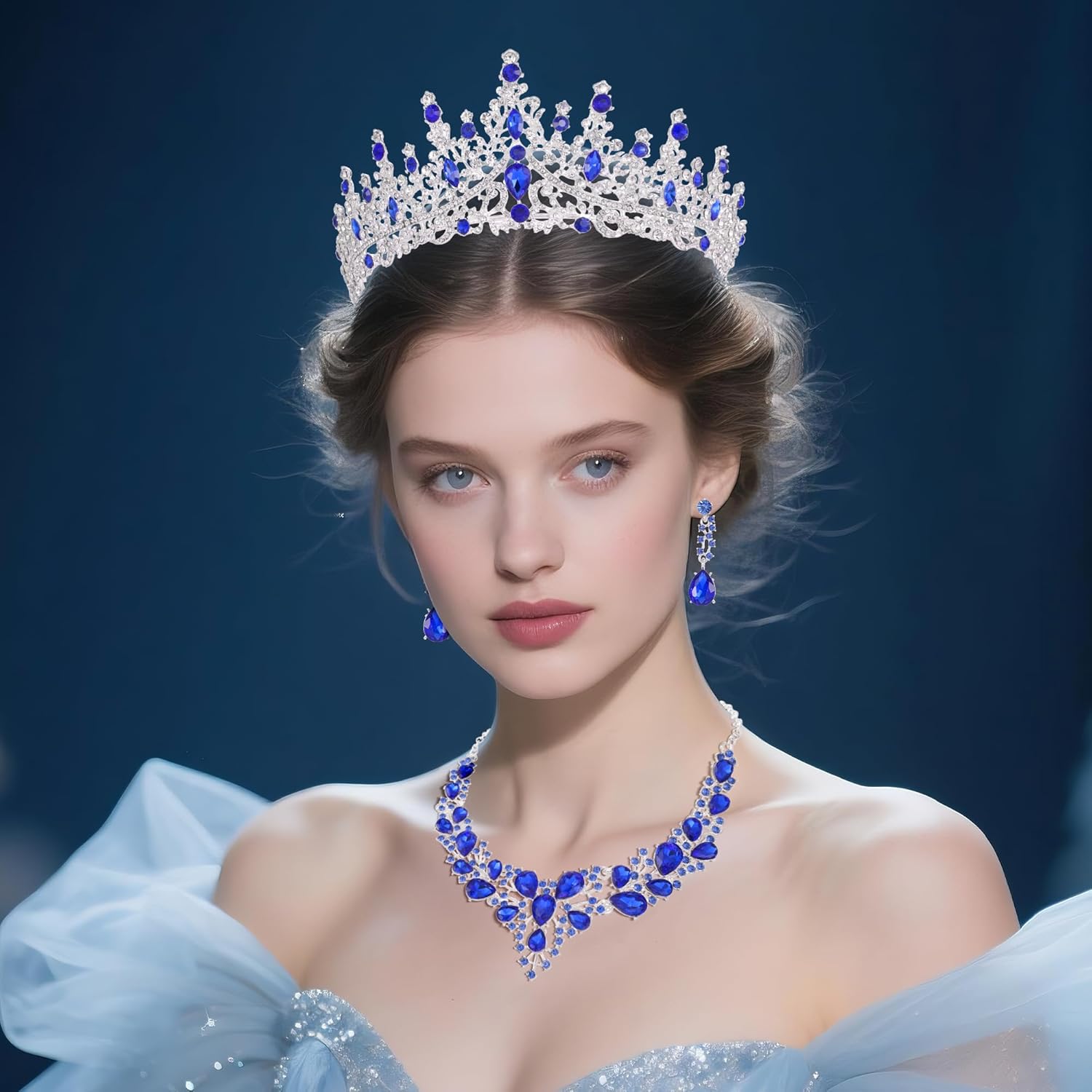 Kamirola Tiaras and Crowns for Women,Tiaras Earrings Necklace, Crystal Bridal Jewelry Set