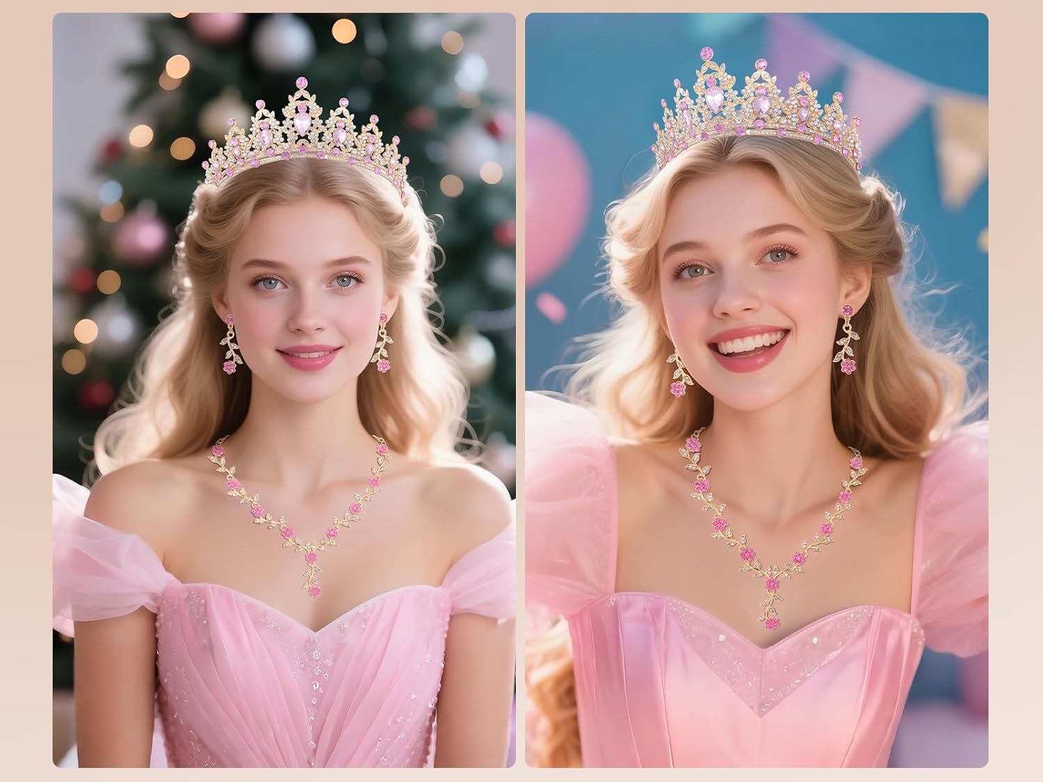 Customers find the tiara set beautiful, with one mentioning it matches their dress perfectly. The jewelry receives positive feedback for its quality, value, and size, with one customer noting it’s perfect for a Bridgerton-themed brunch. Moreover, the set includes bobby pins for secure attachment, and customers appreciate its sturdy base and appropriate weight.