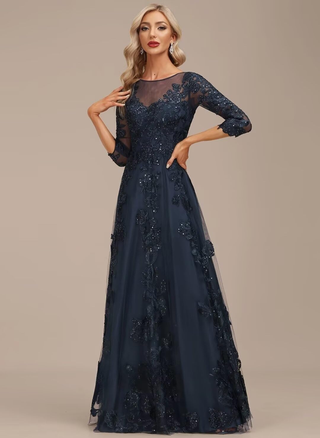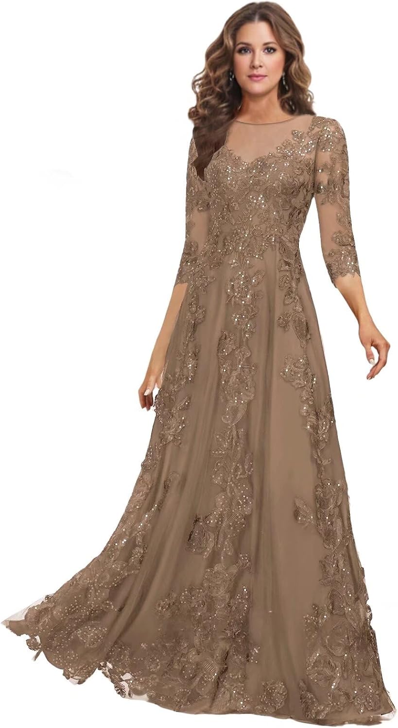 Lace Appliques Mother of the Bride Dresses Long with 3/4 Sleeve