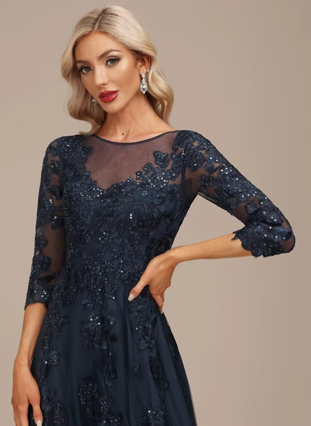 3/4 Sleeve Lace Mother of the Groom Dresses Long for Wedding Details