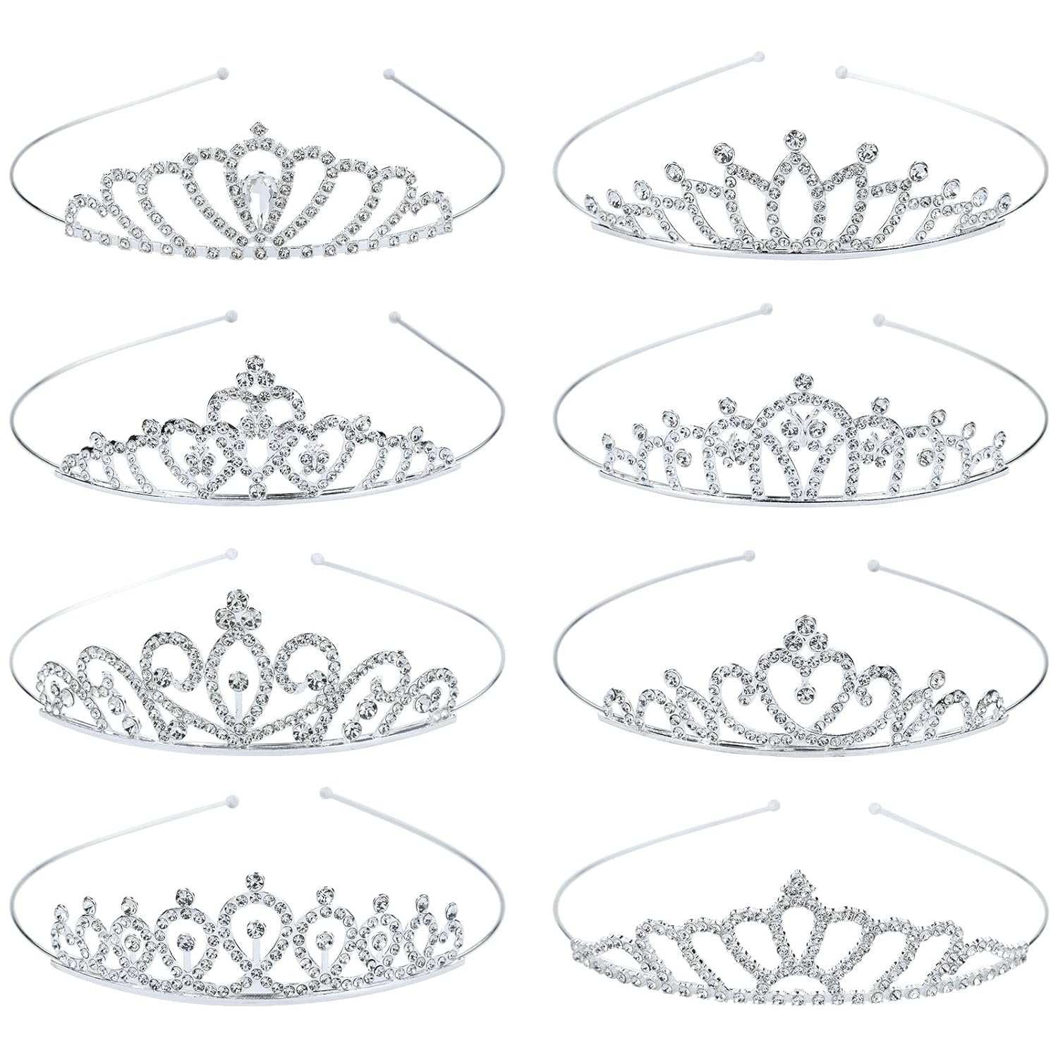 Title: ð Rhinestone Tiaras ð Girls & Women ð 8 Count ð Plated Alloy Metal ð
