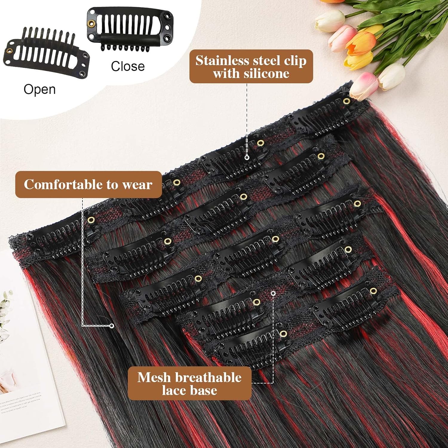 Review: 1. Natural Look and Color Match:The dark brown shade is rich and blends seamlessly with my natural hair. The layered design creates a more natural, salon-quality look, and the synthetic fibers are surprisingly soft and shiny—without looking overly fake or plasticky.2. Easy to Use:The 5-piece set offers just the right amount of coverage and volume without feeling too heavy. The clip-ins are sturdy and secure, making the application process super simple, even for someone like me who’s not a hair pro. It only took about 5 minutes to install, and they stayed in place all day.3. Comfortable and Lightweight:Despite being thick and full, the extensions are lightweight and comfortable to wear. The lace weft design adds a touch of invisibility, so they’re virtually undetectable even with thinner hair.4. Versatility:At 20 inches long, these extensions are perfect for creating sleek, straight hairstyles or even curling for a more textured look. Whether for everyday wear or special occasions, they add a touch of glamour effortlessly.5. Budget-Friendly:For the price, these extensions are an absolute steal! They offer a quality look and feel without the hefty cost of natural hair extensions. While synthetic, they hold up surprisingly well to styling and wear.Things to Note:Since these are synthetic, avoid using excessive heat when styling to maintain their longevity. I’ve found that gentle brushing and storage in a satin bag keep them looking fresh for longer.Overall:The Lommel Clip-in Hair Extensions are perfect for anyone looking to add instant volume, length, or a touch of drama to their look. Whether for casual outings, weddings, or photo shoots, these extensions are a game-changer. Highly recommend to anyone wanting affordable, beautiful results!
