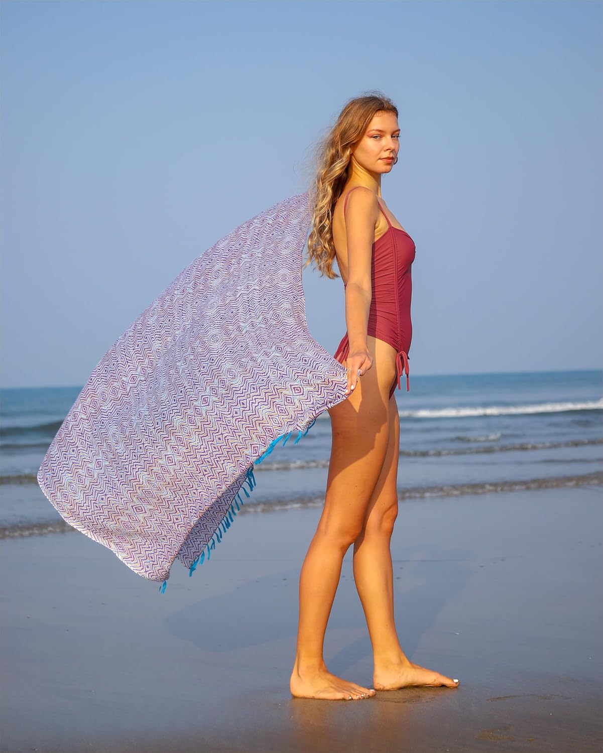 Review: Beautiful! Lightweight, great as a coverup for the pool or beach. Some minor fraying on edges after several uses. Very long & wide to accommodate plus size figures (I wear a size 20 and it completely wraps around me with room to layer and tie).
