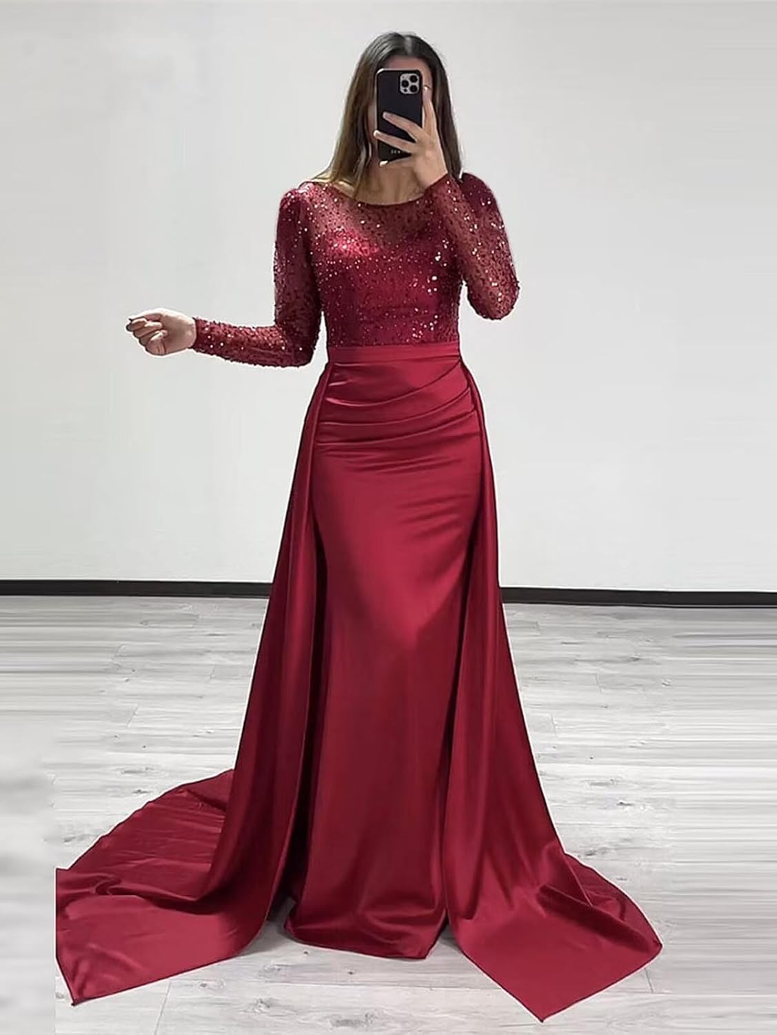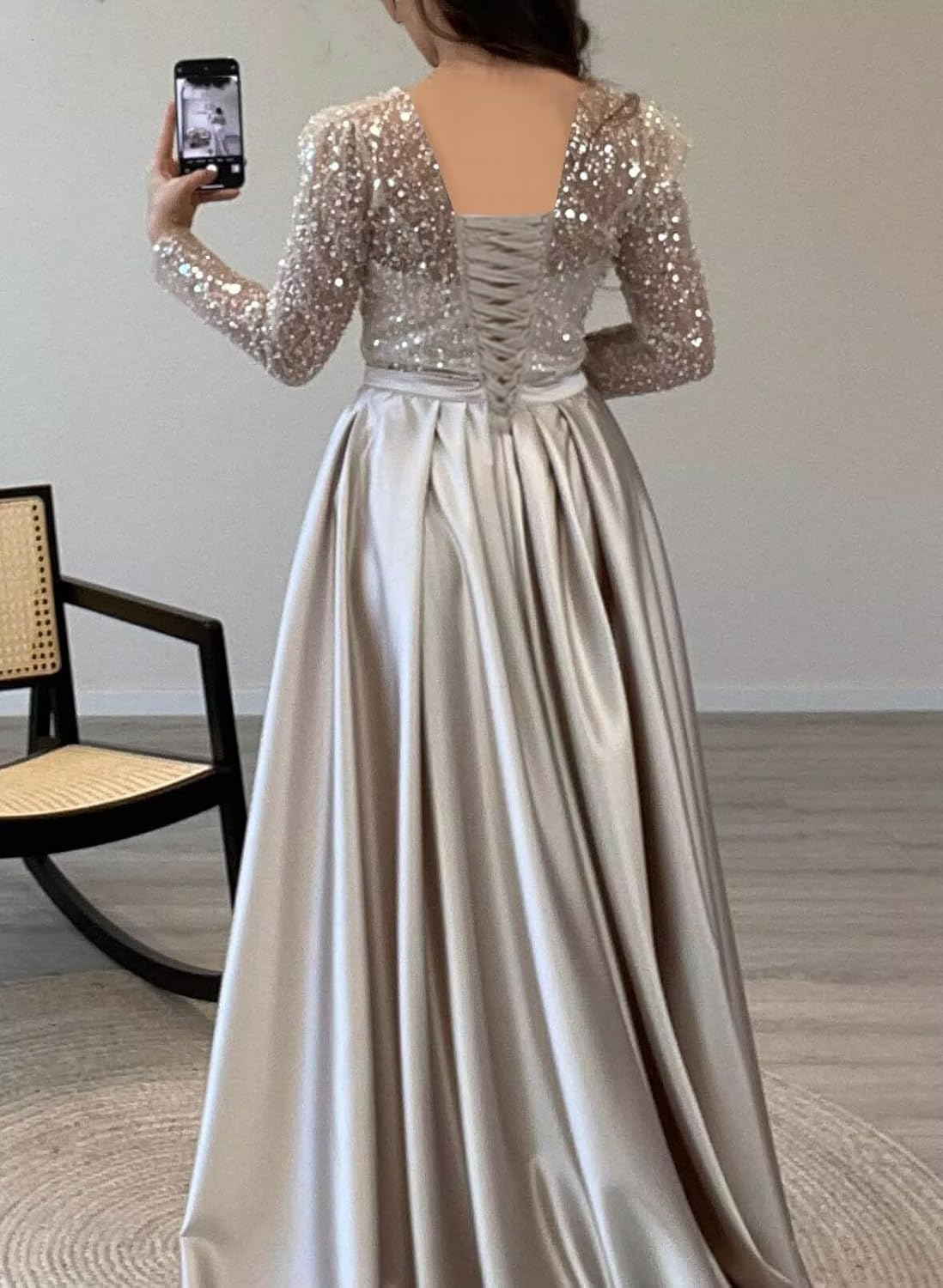 The video showcases the product in use.The video guides you through product setup.The video compares multiple products.The video shows the product being unpacked. raomiao long sleeve mermaid satin prom dress Merchant Video