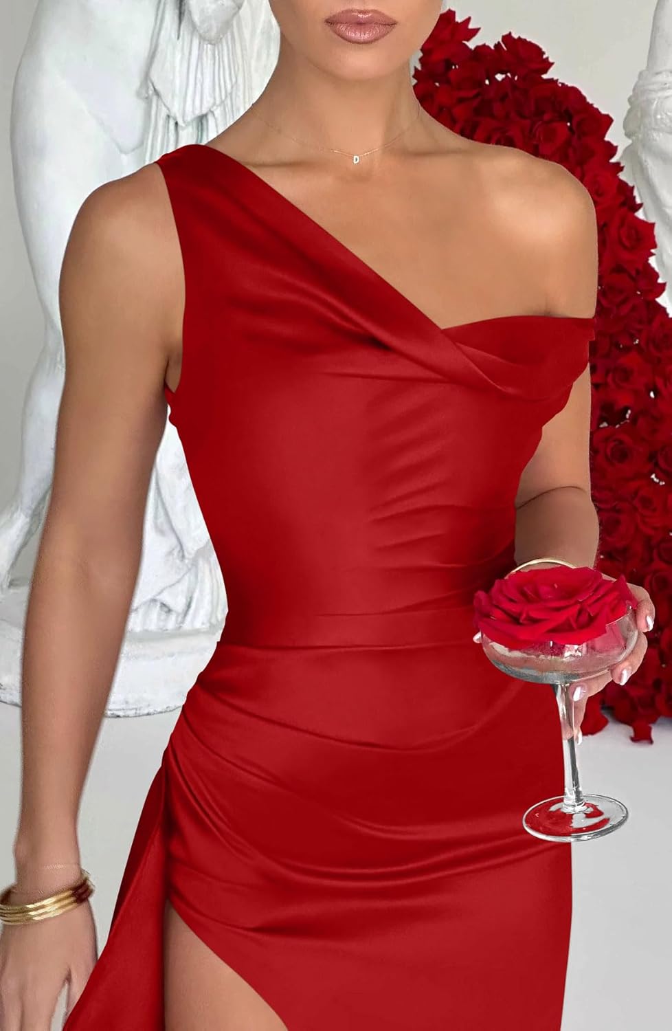 asymmetric necklinethigh high splitelegant drape detailmaxi formal dress