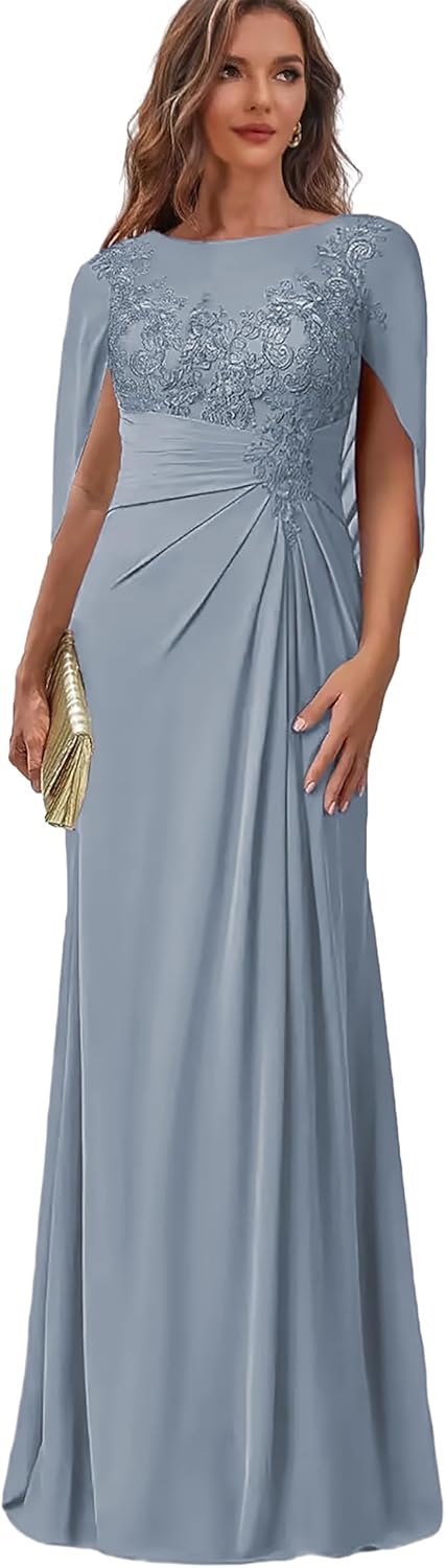 Chiffon Mother of The Bride Dresses for Wedding Lace Formal Gown with Cape